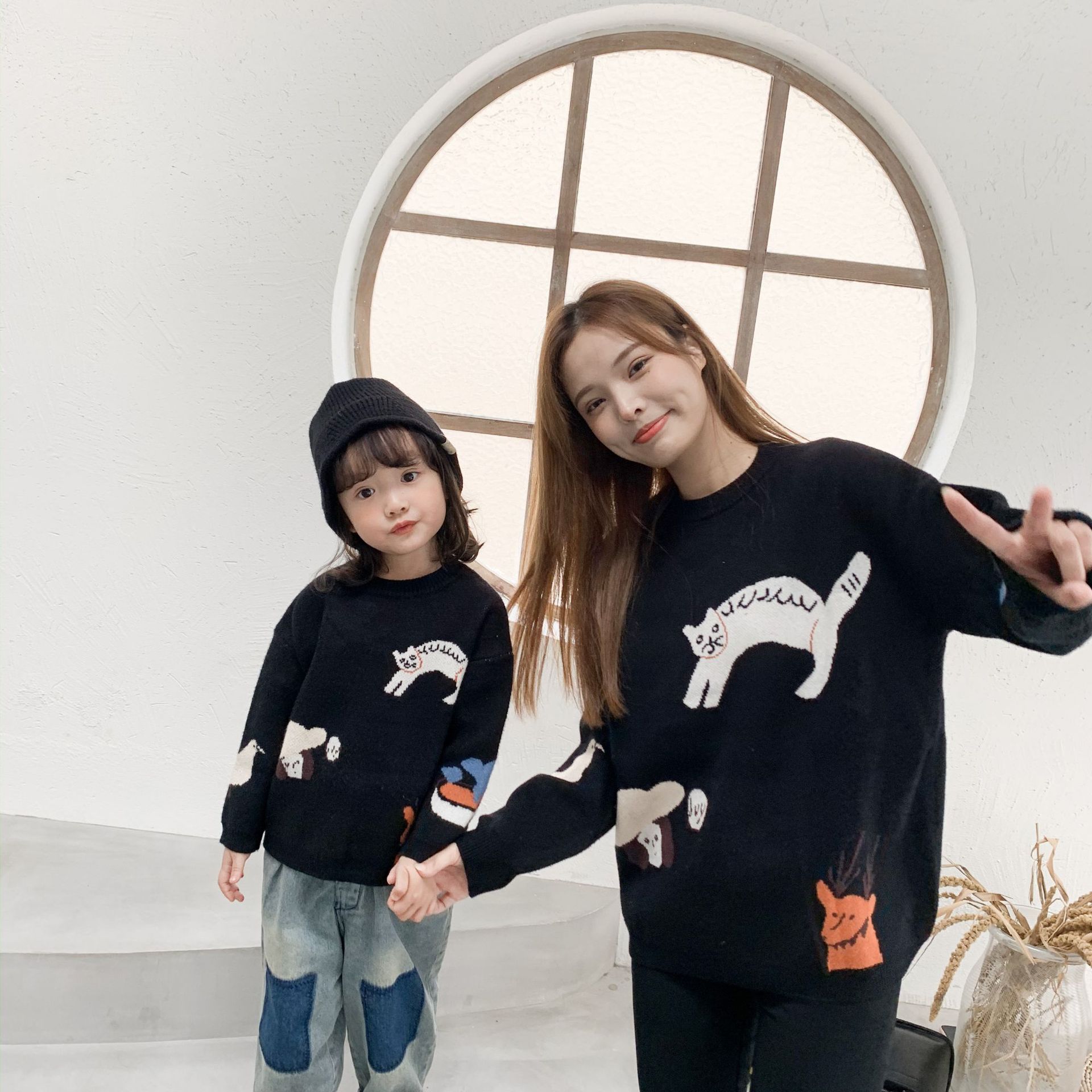 소년 소녀 부모-자식 의류 2020 New 패션 어머니와 딸 가을과 겨울 의류 외국 스타일 동물 니트웨어 스웨터 코트 M41스토어 가기