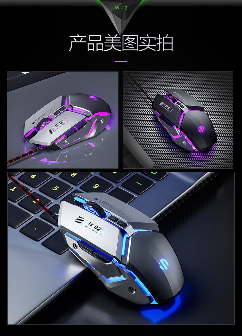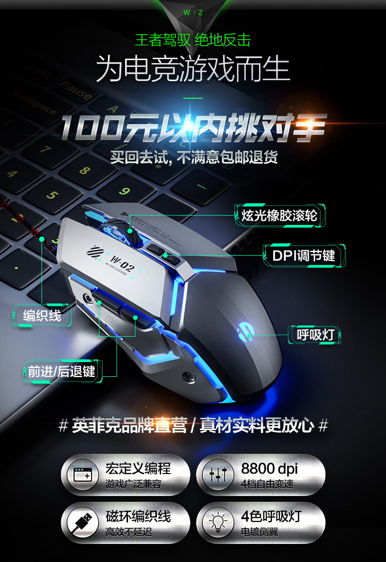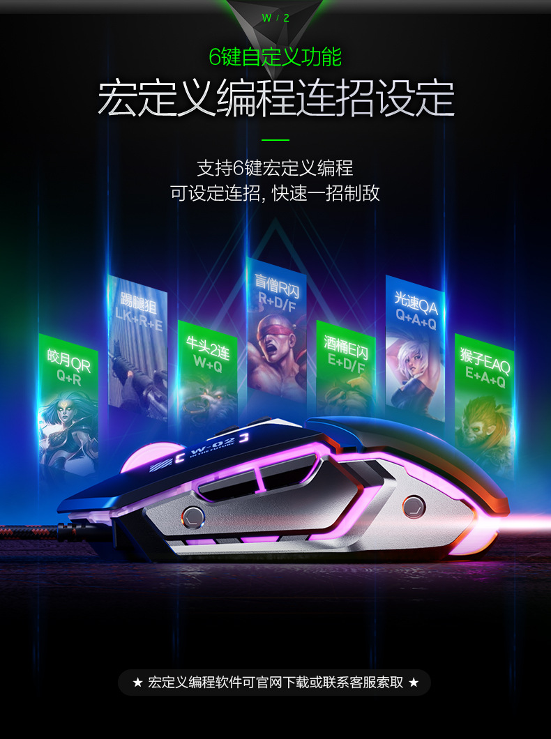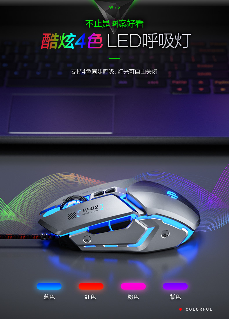 INPHIC INFIK W2 유선 마우스 전자 스포츠 게임 매크로 정의 발광 오피스 데스크톱 노트북