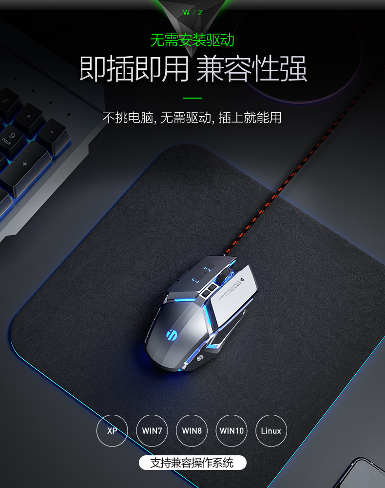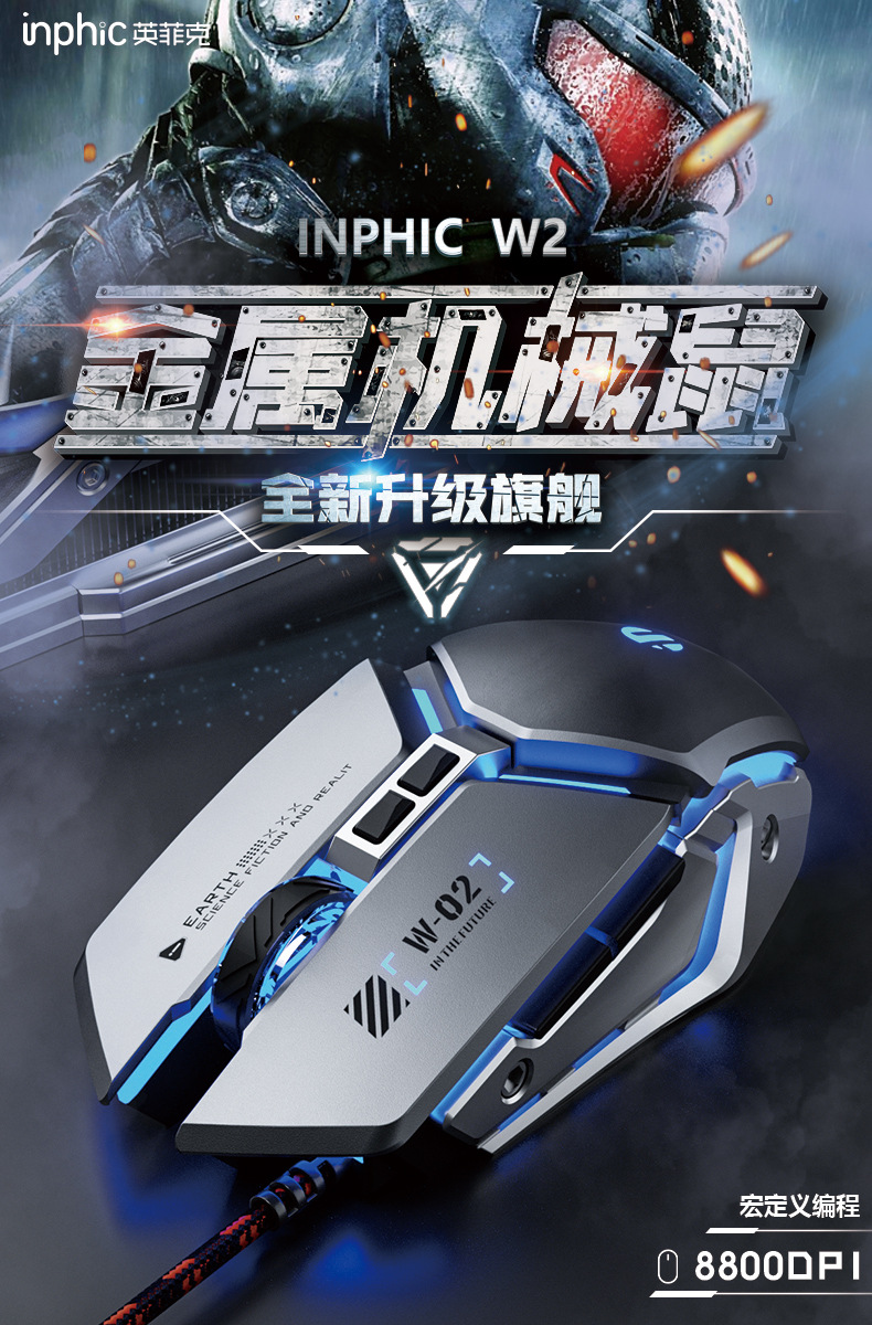 INPHIC INFIK W2 유선 마우스 전자 스포츠 게임 매크로 정의 발광 오피스 데스크톱 노트북스토어 가기