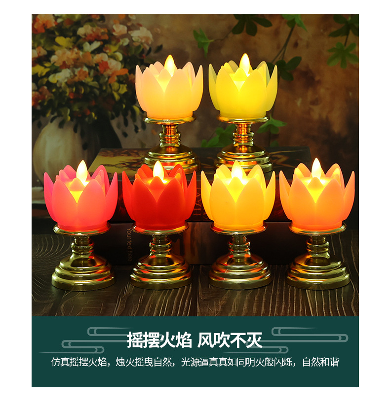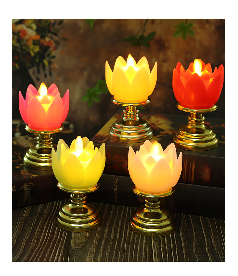 골드 바닥 다채로운 연꽃 램프 LED 시뮬레이션 양초 램프 장식품 달마 관음 부의 신 부처 램프 이제까지 밝은 램프 도매
