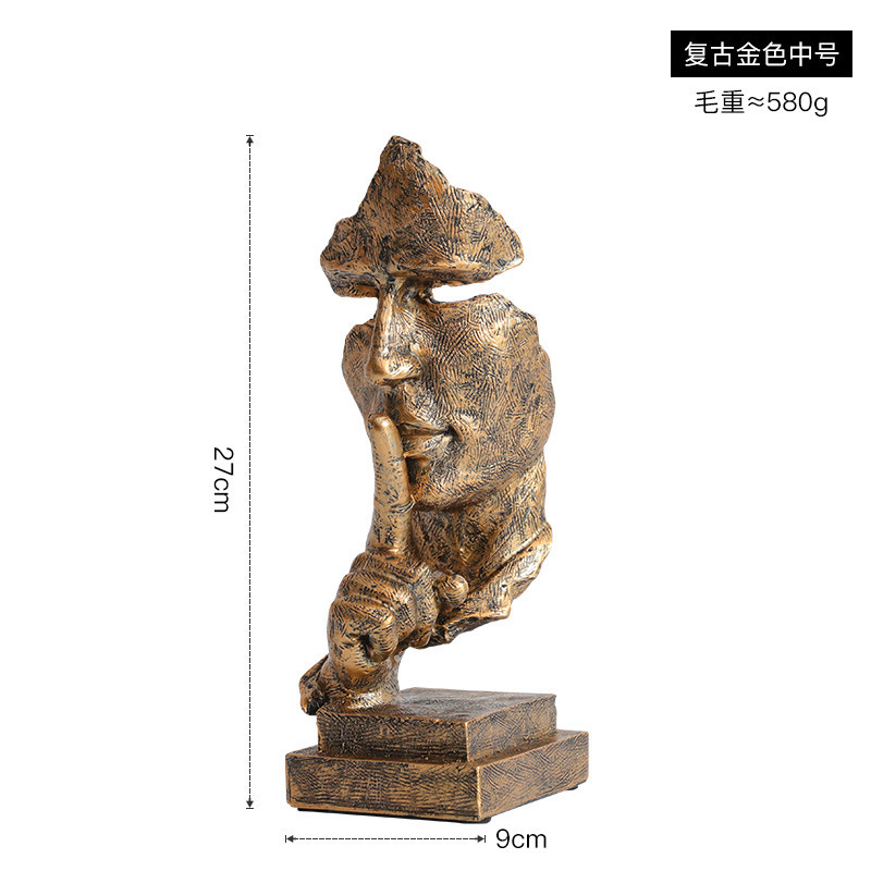 창조적 인 거실 예술 장식 장식 침묵은 금 조각이다 복고풍 수지 공예 장식 16324스토어 가기