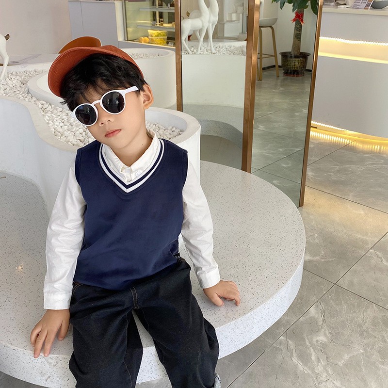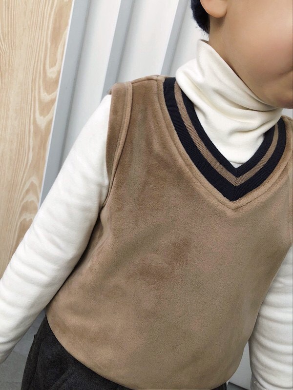 남자 아기의 양면 실버 여우 벨벳 조끼 조끼 가을과 겨울 착용 남성 아동복 민소매 V-넥 탑 유행 내복 따뜻한 유행