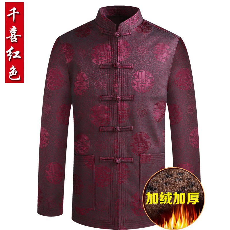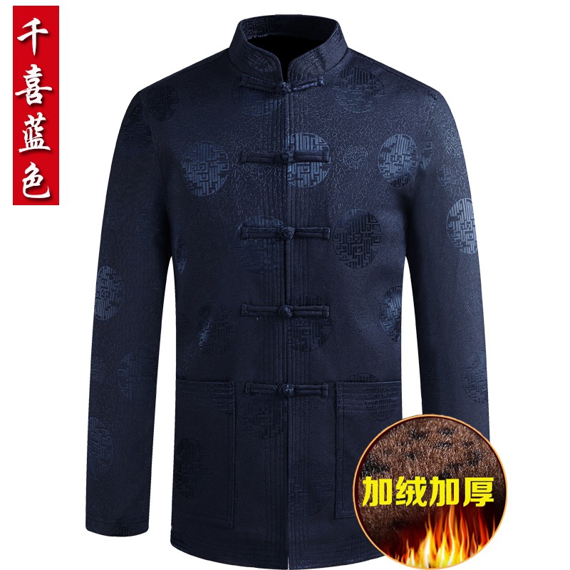 Tang 세트 남성 중년 및 노인 할아버지 세트 가을과 겨울 코트 기모 두꺼운 긴 수명 따뜻한 아빠 세트 면 코트 옷