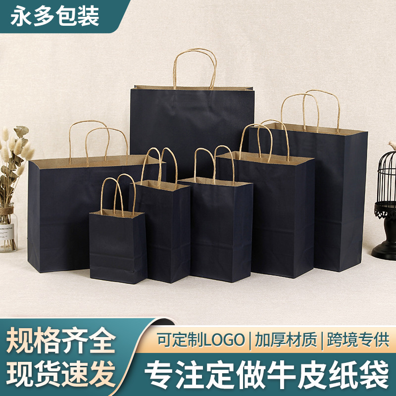 재고 있음 네이비 블루 크래프트 종이 토트 백 의류 쇼핑 포장 토트 백 커피 포장 테이크 아웃 백