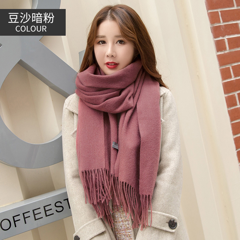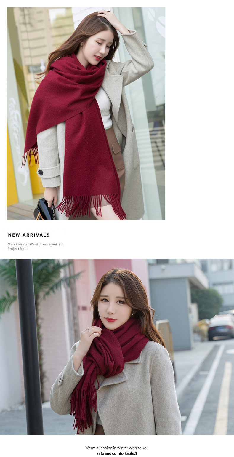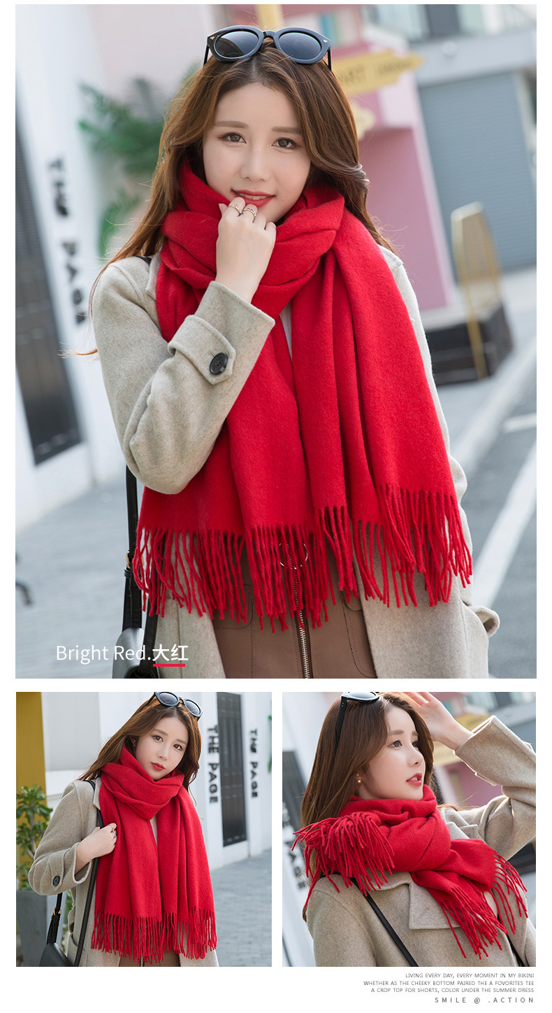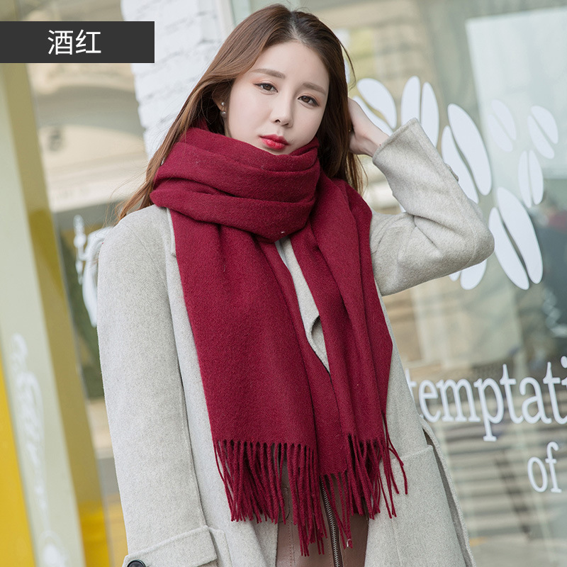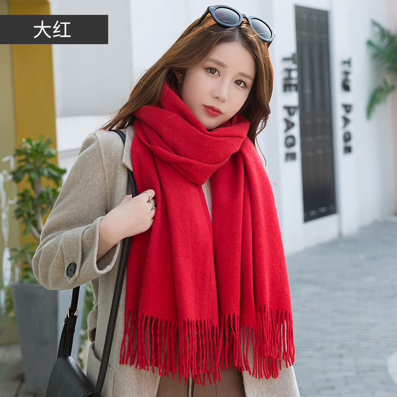 연간 저녁 식사 빅 레드 100 울 스카프 여성용 겨울 새로운 단색 울 스카프 따뜻한 이중 사용 숄스토어 가기