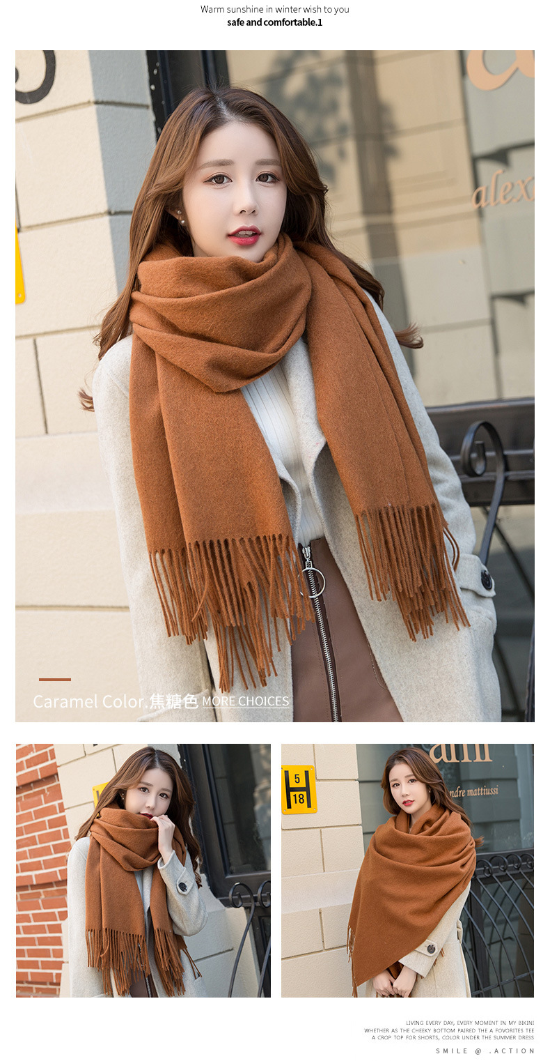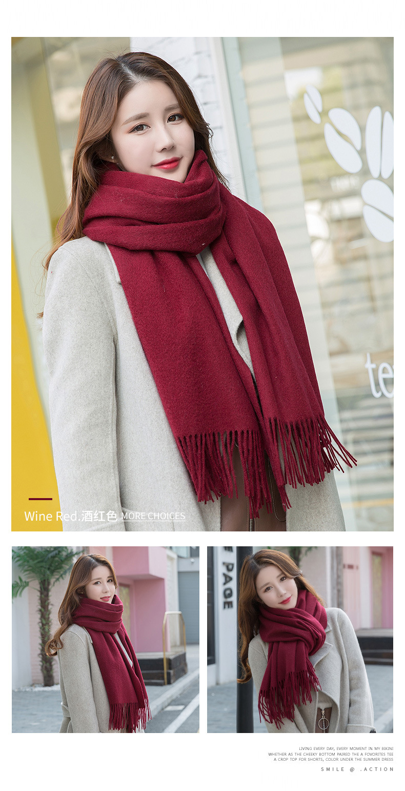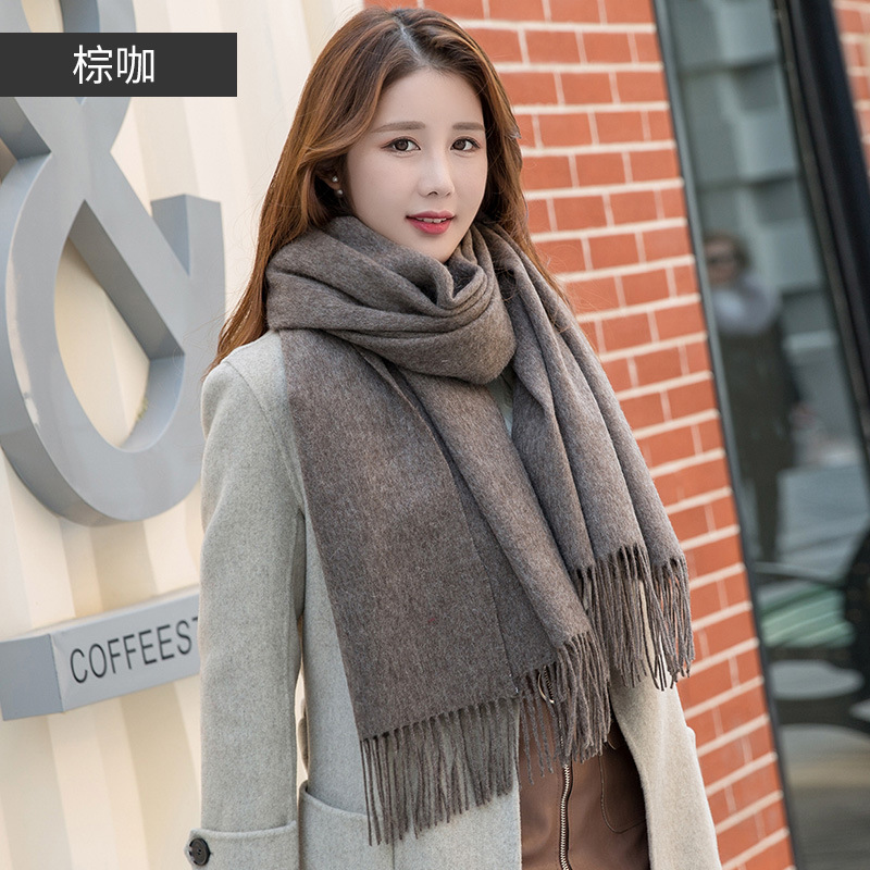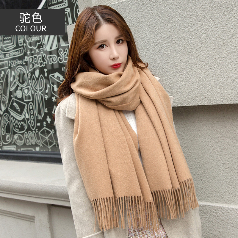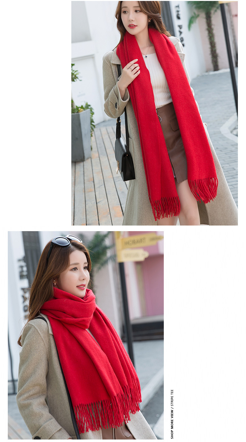 연간 저녁 식사 빅 레드 100 울 스카프 여성용 겨울 새로운 단색 울 스카프 따뜻한 이중 사용 숄스토어 가기