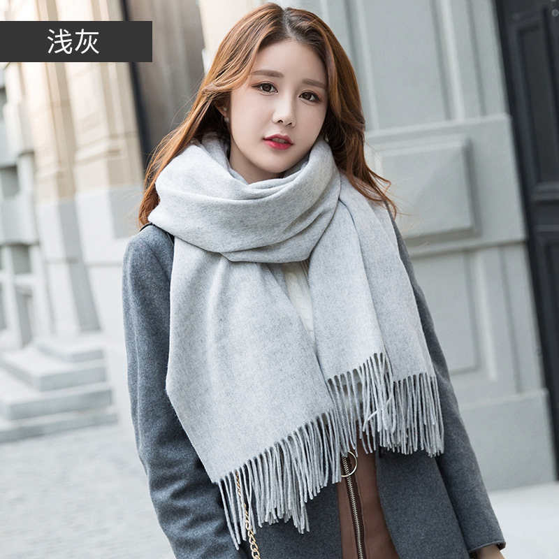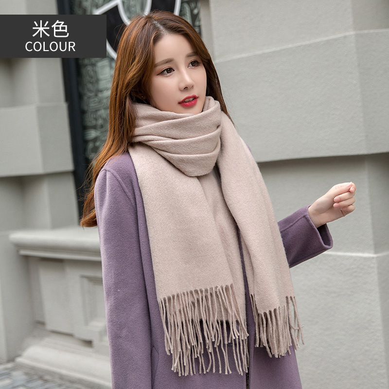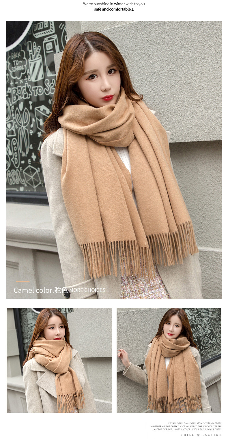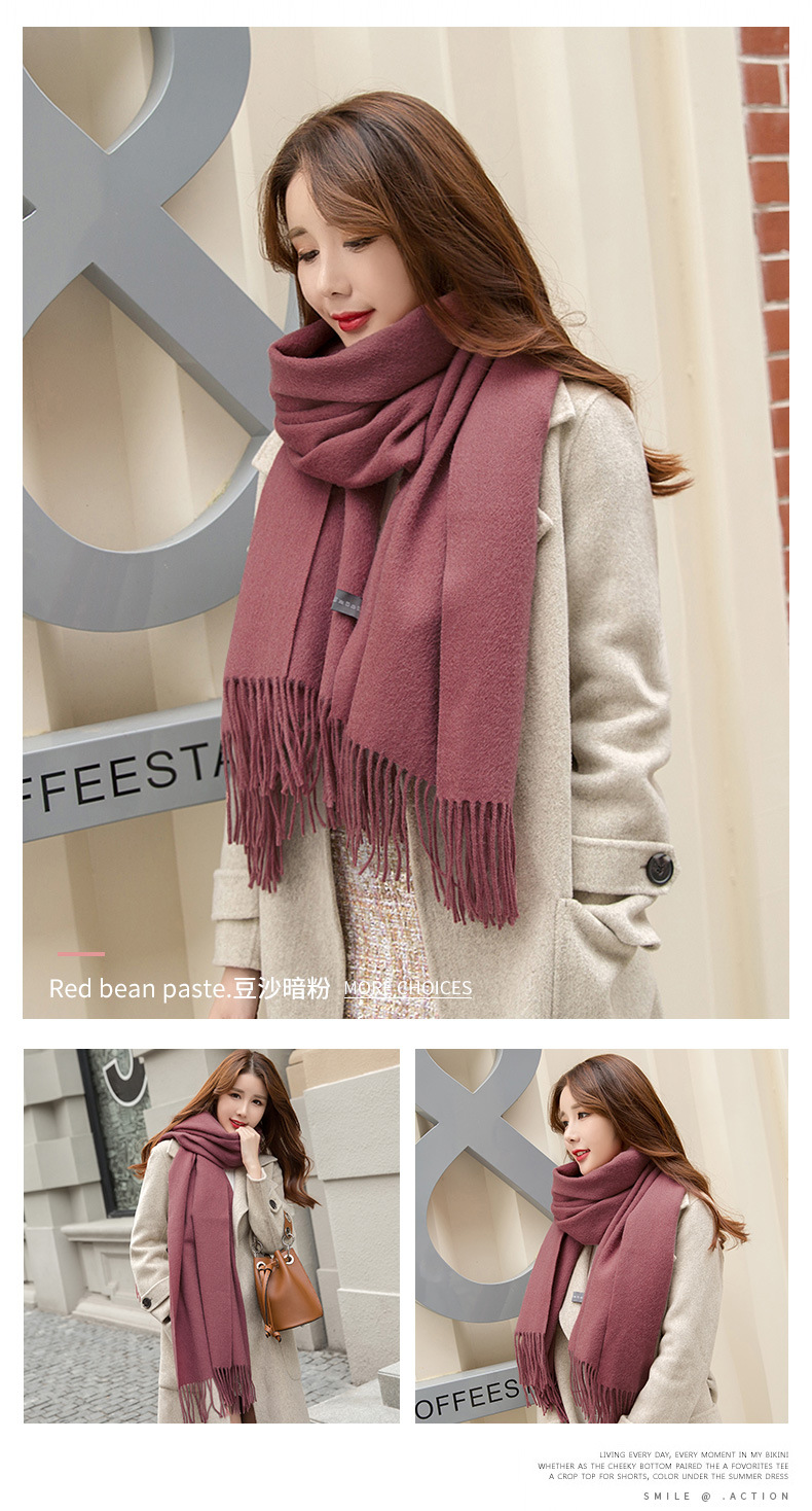 연간 저녁 식사 빅 레드 100 울 스카프 여성용 겨울 새로운 단색 울 스카프 따뜻한 이중 사용 숄스토어 가기