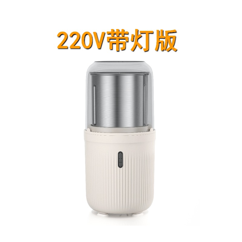 白色带灯款:主机带有电源灯指示,磨粉杯可以拆洗、有内盖外盖、干湿食材都能搅打研磨、容量200mL大容量、电源线分离、彩色加硬中性英文套无文字物流盒,防止跨境物流损坏。