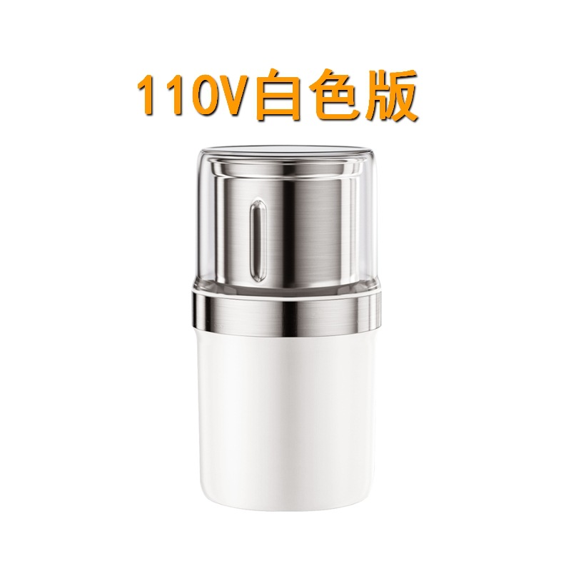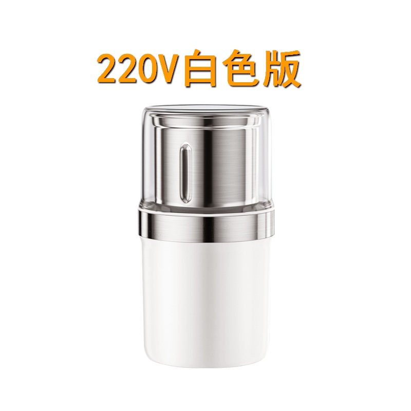 白色光面款:磨粉杯可以拆洗、有内盖外盖、干湿食材都能搅打研磨、容量200mL大容量、电源线拆分、彩色加硬中性英文套无文字物流盒,防止跨境物流损坏。