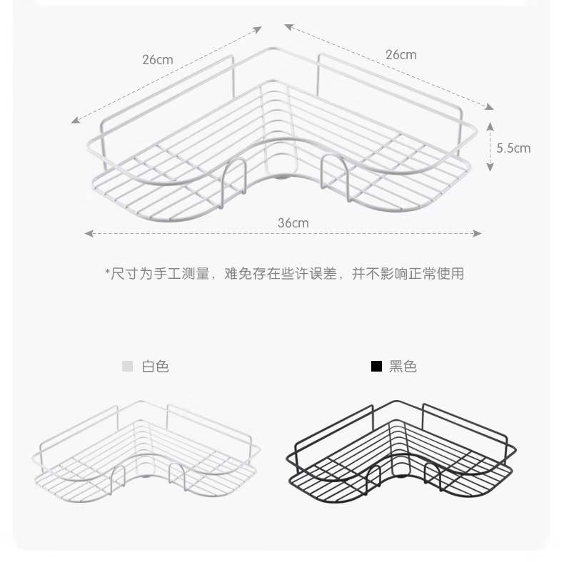 욕실 코너 수납 선반, 벽걸이 철제 수납 선반, 무타공 삼각형 선반