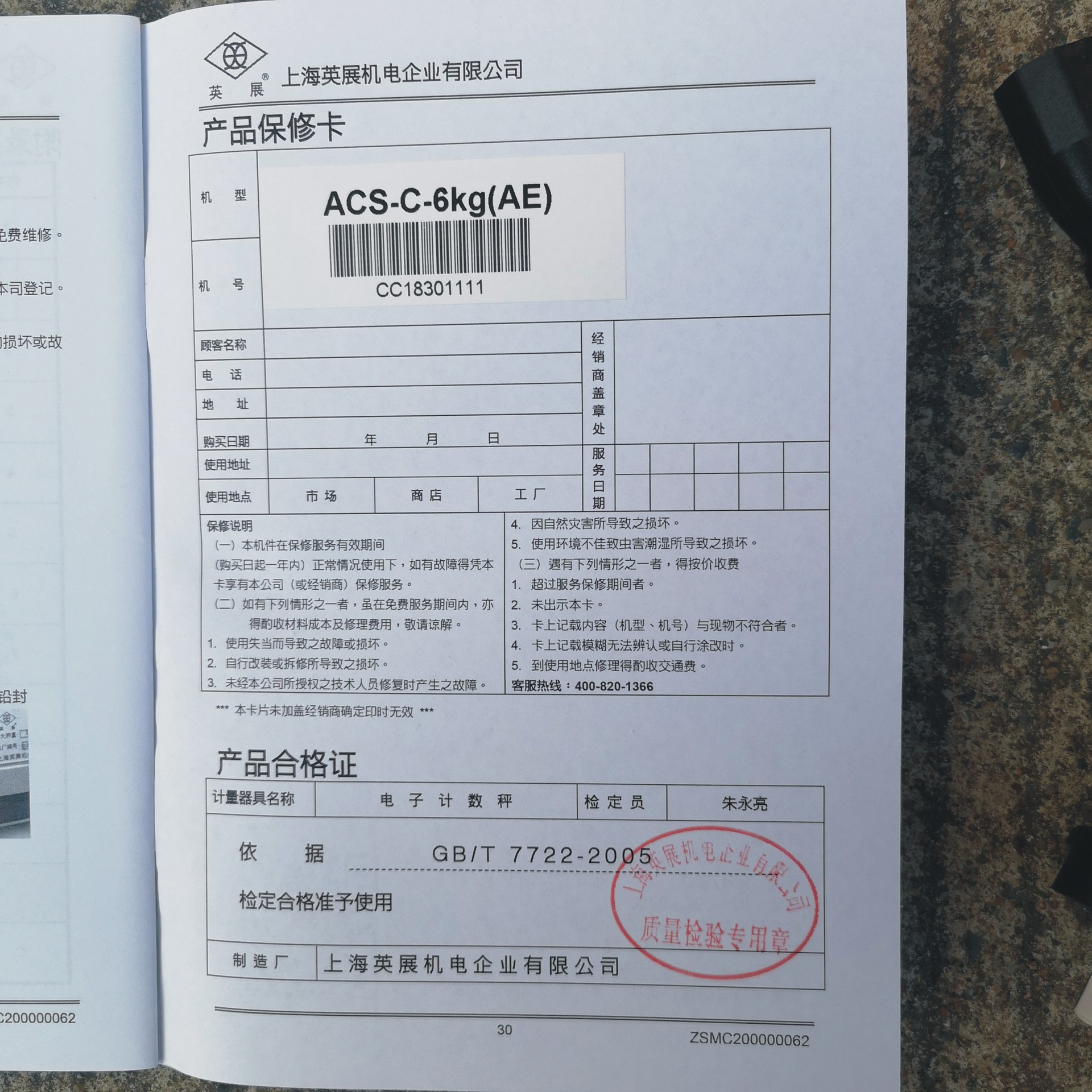 上海英展电子秤桌秤ACS系列1.5kg3kg 6kg7.5kg15kg30kg计数电子称