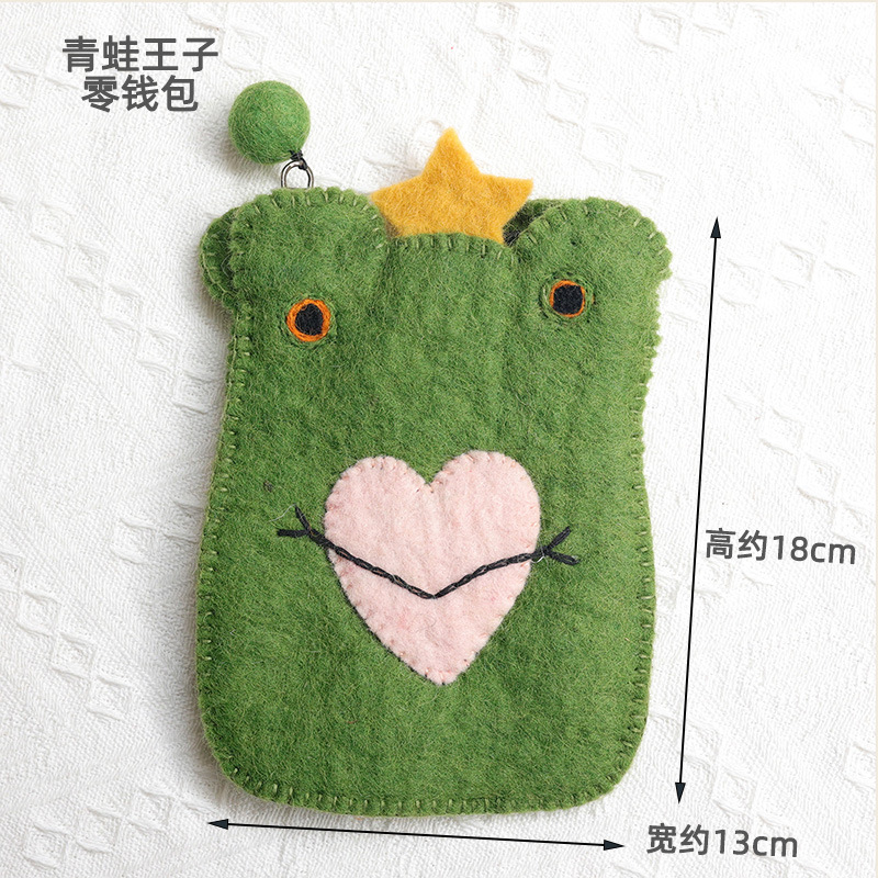 일본-한국 스타일 귀여운 동물 울 펠트 동전 지갑 작은 카드 동전 작은 가방 스테레오 수제 교수형 가방