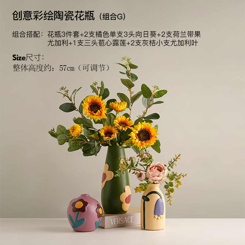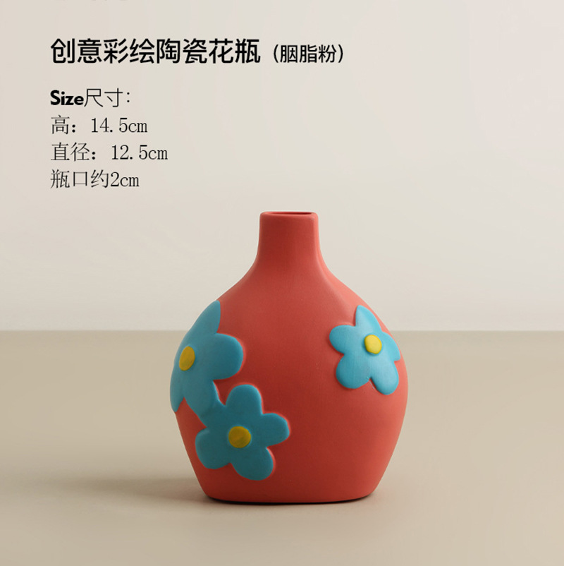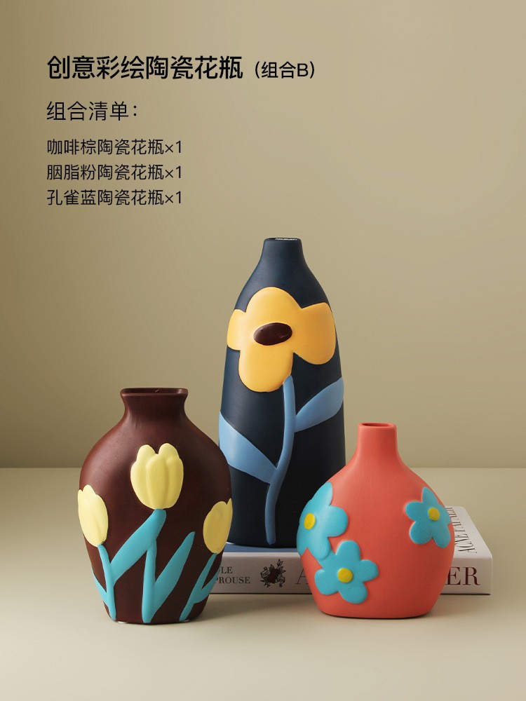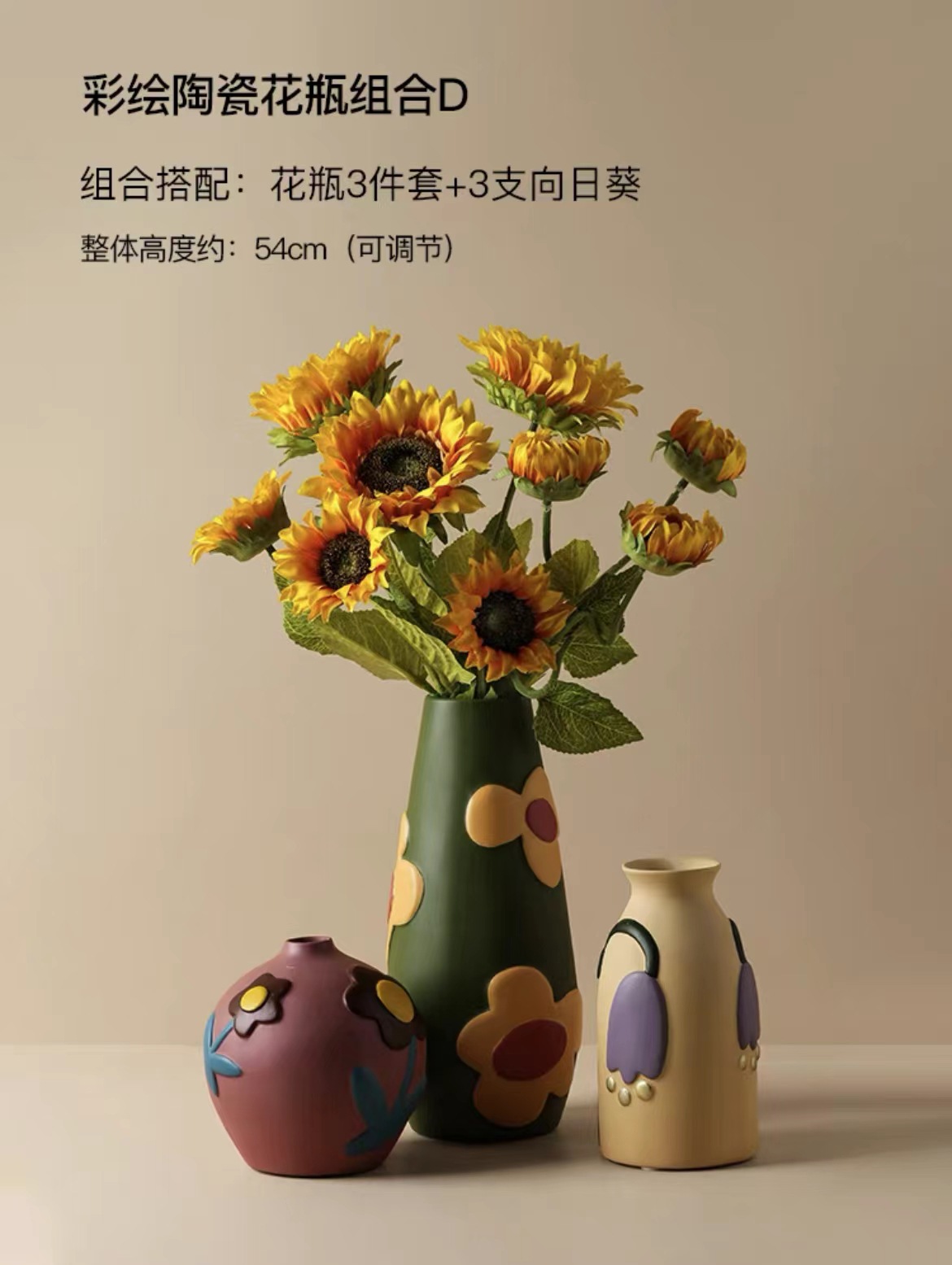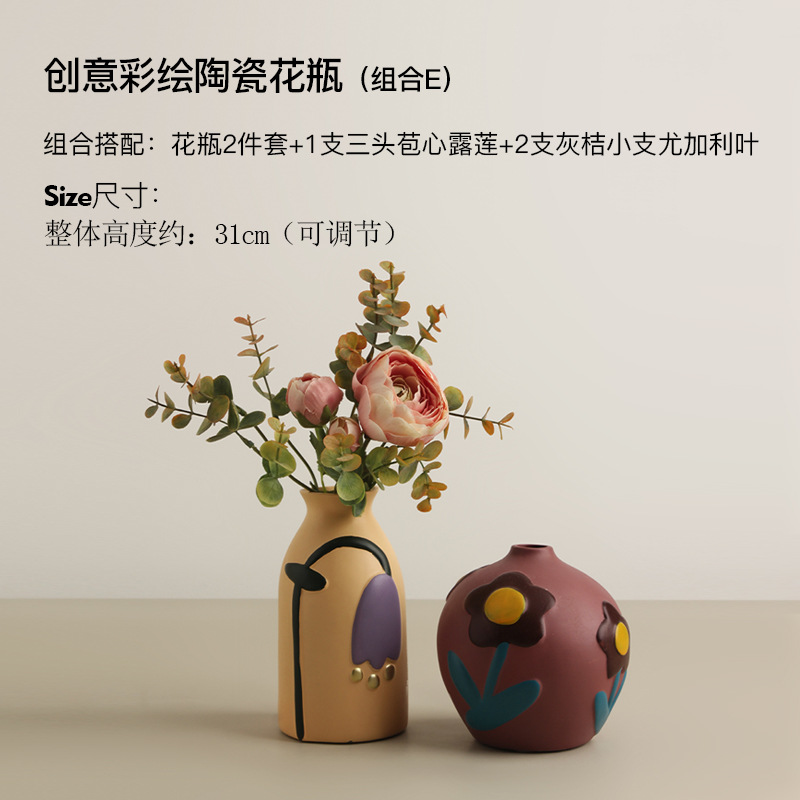 • 페인트 세라믹 꽃병 A + C 꽃 세트