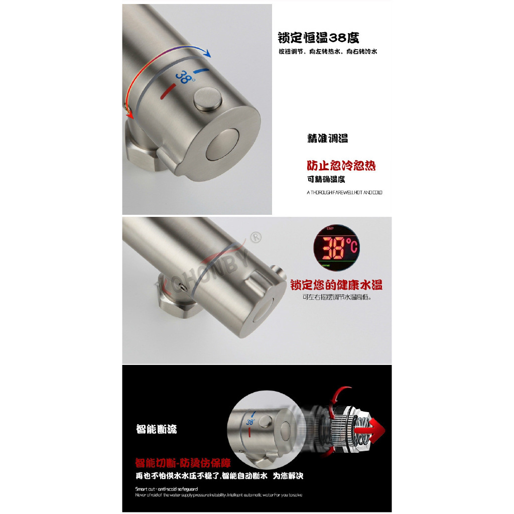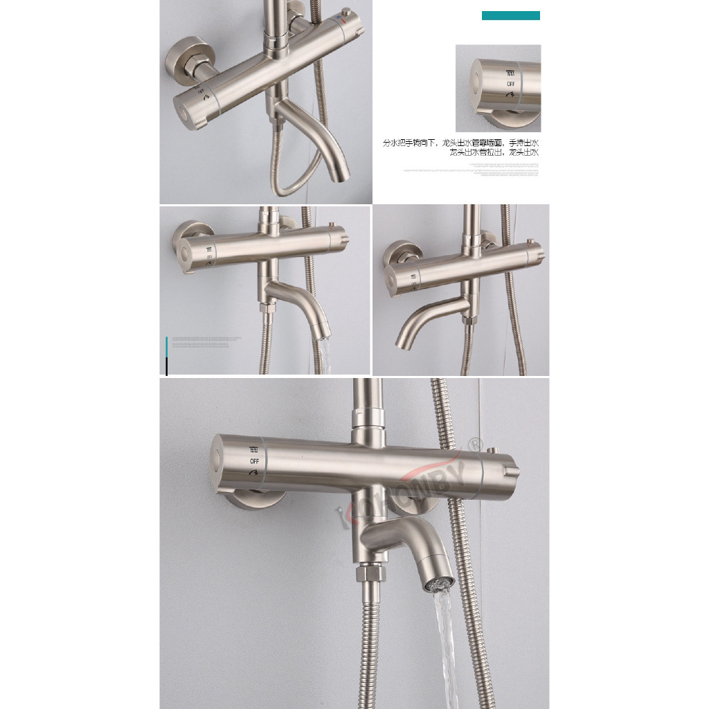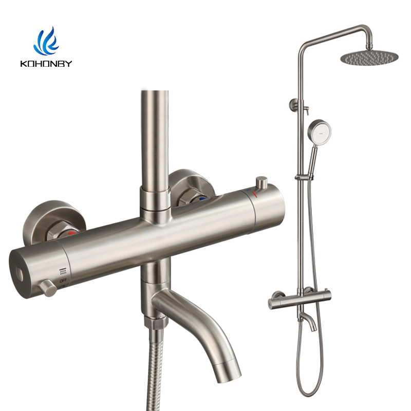 공장 직접 공급 304 스테인레스 스틸 일정한 온도 샤워 헤드 세트 뜨겁고 차가운 온도 제어 샤워 수도꼭지 스톨 공급