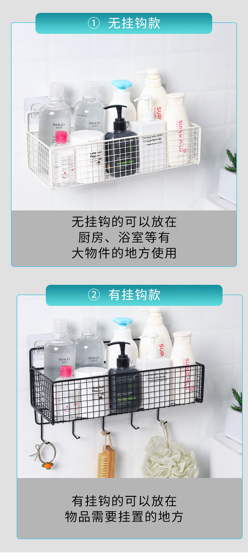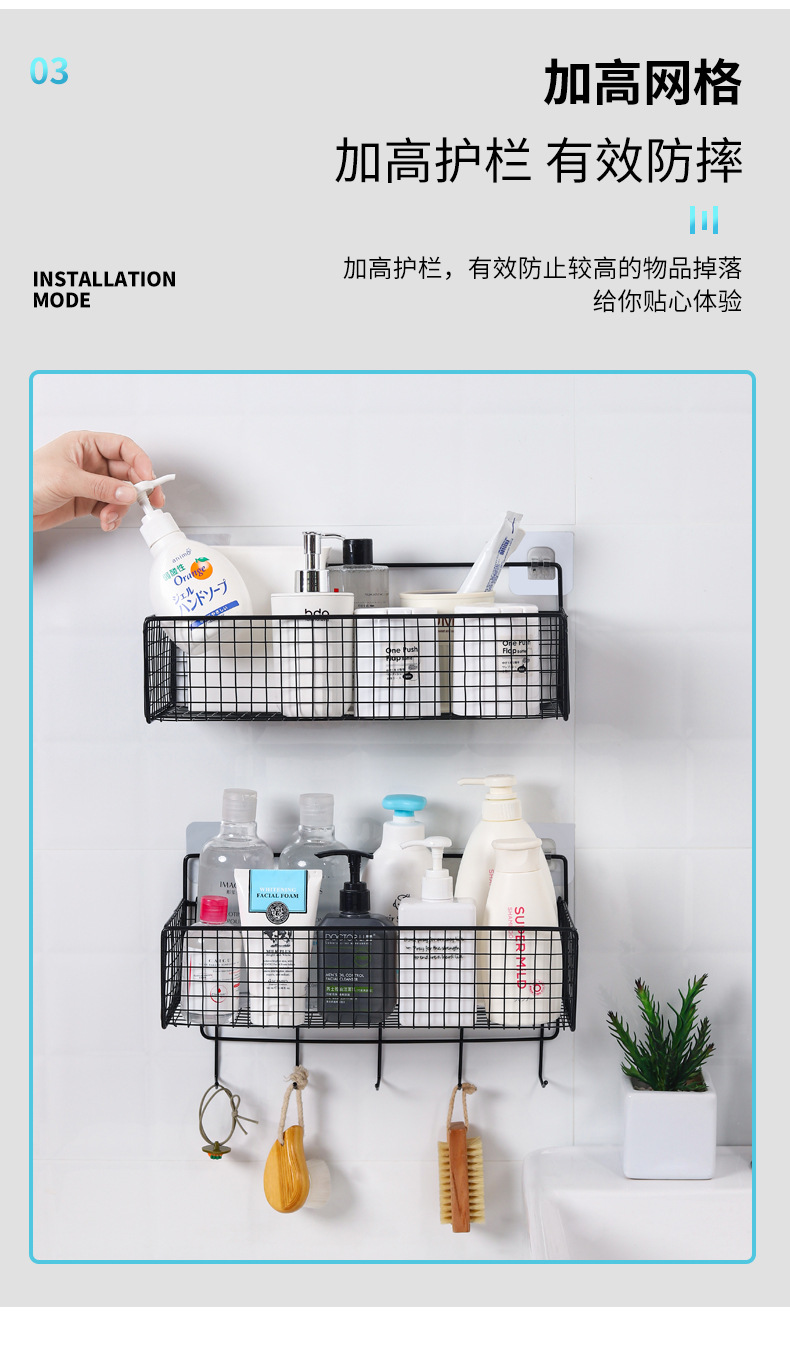 유왕 패밀리 욕실 욕실 욕실 주방 거실 기숙사 벽걸이 펀치 프리 스토리지 랙 수납 걸이 바구니 네일 프리스토어 가기