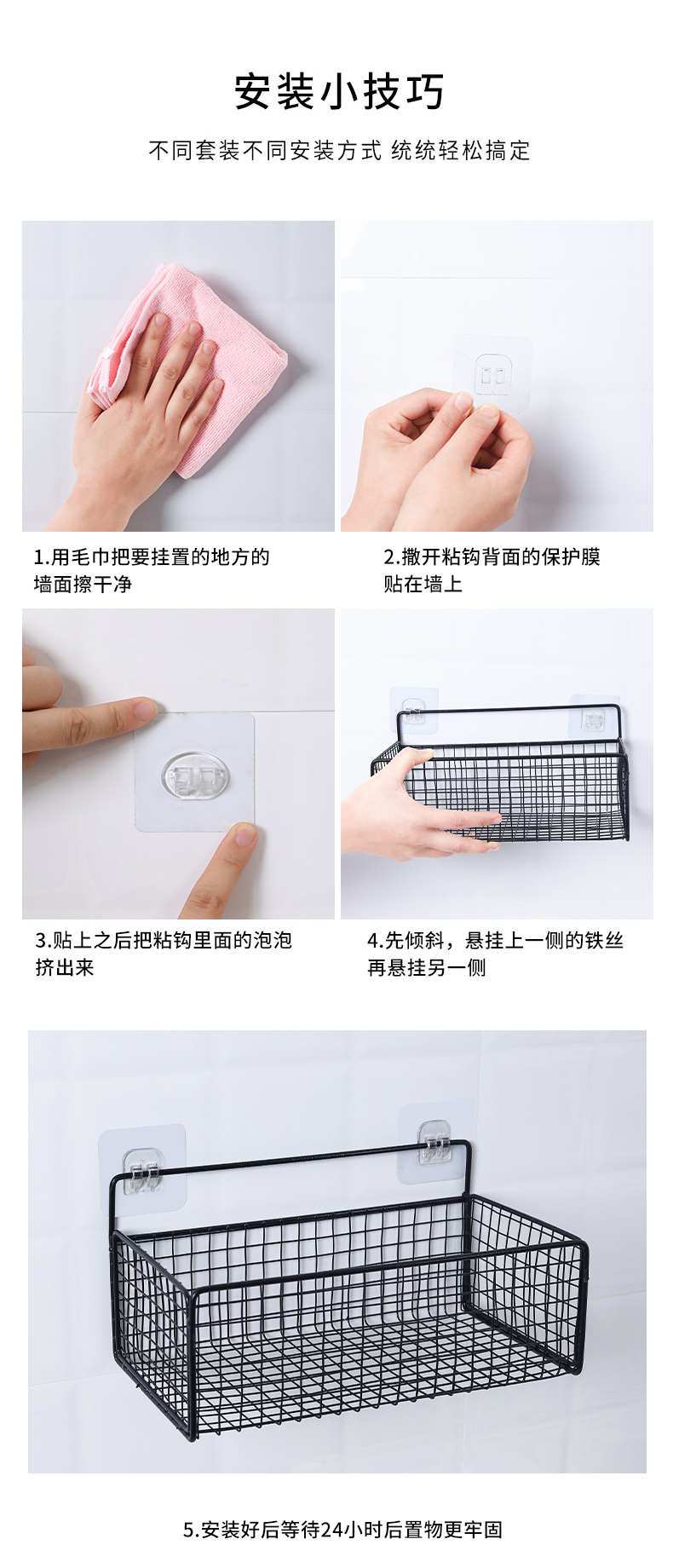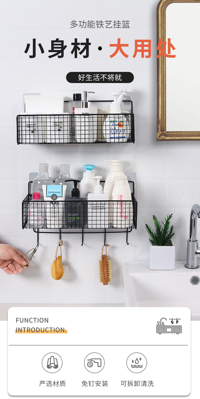 유왕 패밀리 욕실 욕실 욕실 주방 거실 기숙사 벽걸이 펀치 프리 스토리지 랙 수납 걸이 바구니 네일 프리