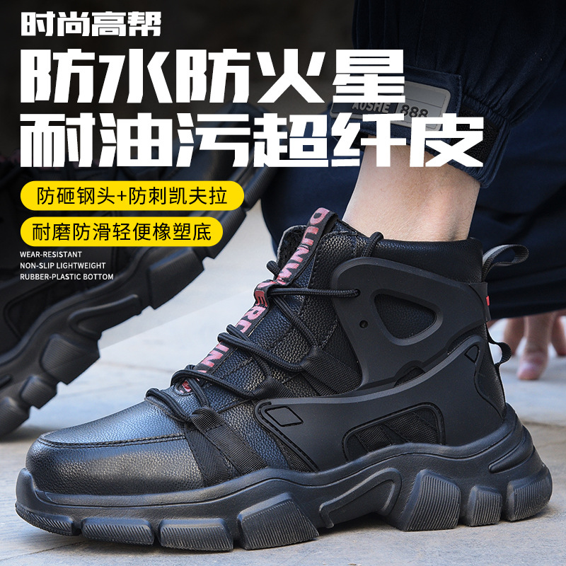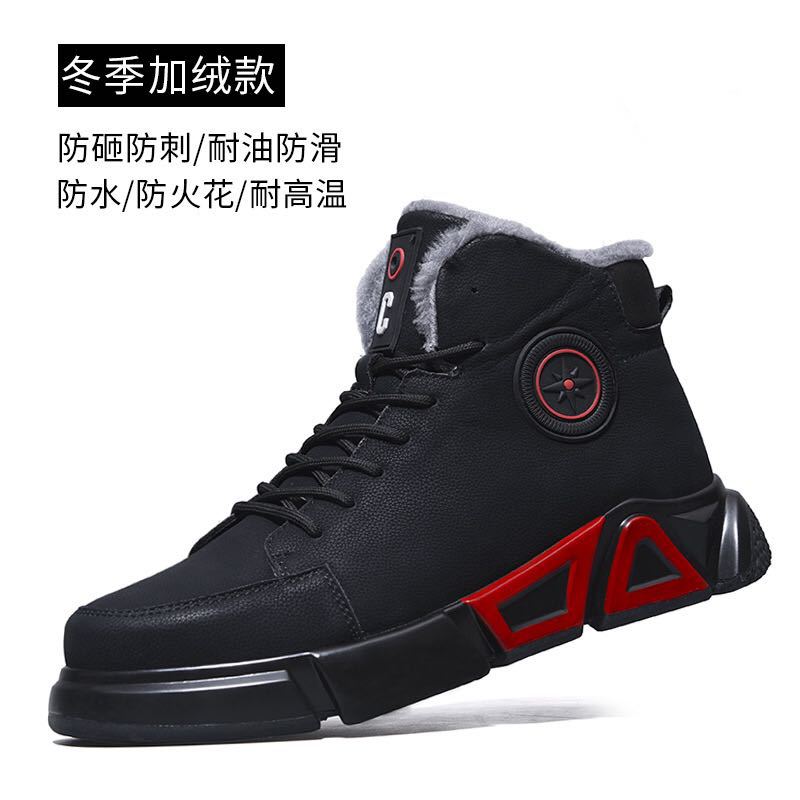 겨울 하이탑 노동 보호 신발, 남성용 면화, 벨벳 따뜻한 부츠, 방한, 방수, 스매쉬 방지, 펑크 방지 작업 안전화