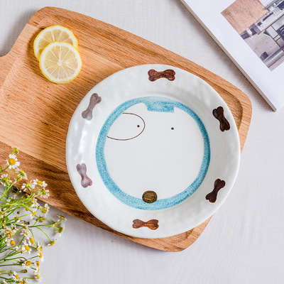 귀여운 만화 토토로 세라믹 플레이트 예술적 손으로 그린 조잡한 도자기 과일 디저트 플레이트 가정용 딥 플레이트 어린이 식기 선물스토어 가기