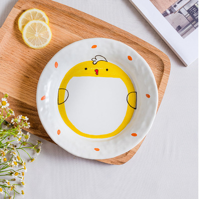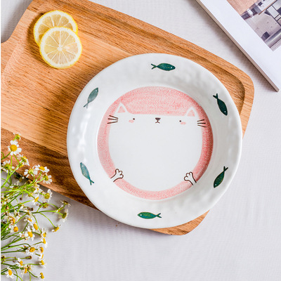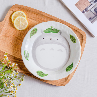귀여운 만화 토토로 세라믹 플레이트 예술적 손으로 그린 조잡한 도자기 과일 디저트 플레이트 가정용 딥 플레이트 어린이 식기 선물
