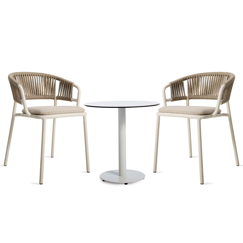 • 하나의 테이블과 두 개의 의자 등나무 원형 테이블 60