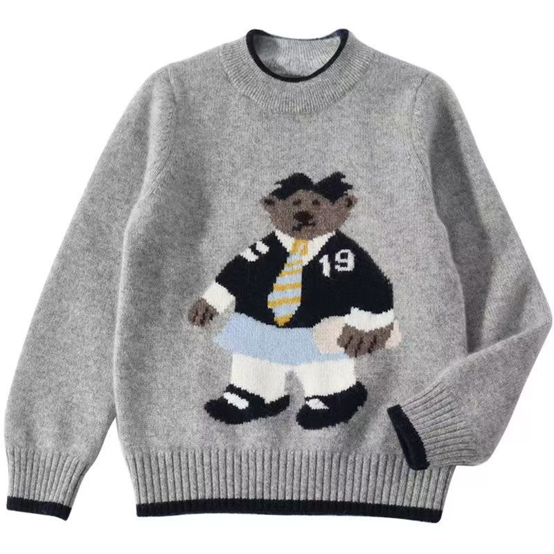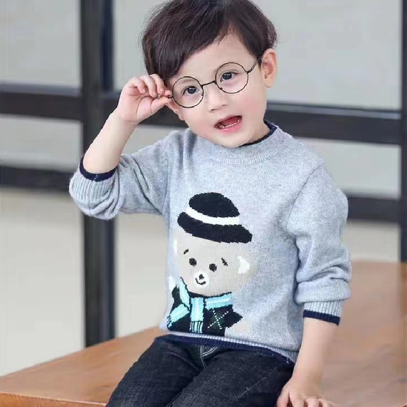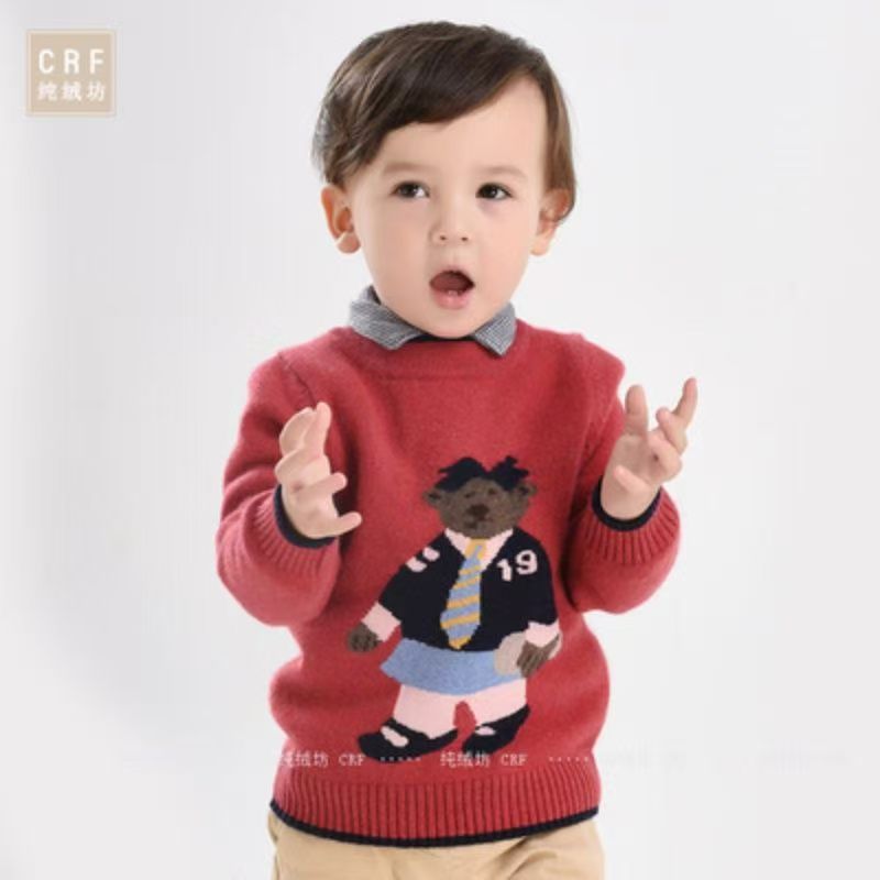 现货批发儿童羊绒衫卡通圆领韩版宝宝套头加厚针织毛衣男童打底衫