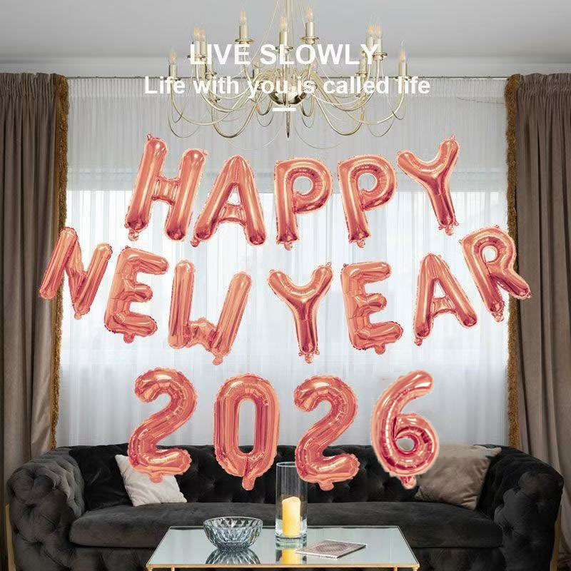 16inch 해피뉴이어 문자 풍선 세트 2026 새해 복 많이 받으세요 설날 장식 알루미늄 필름 풍선 빨간색스토어 가기