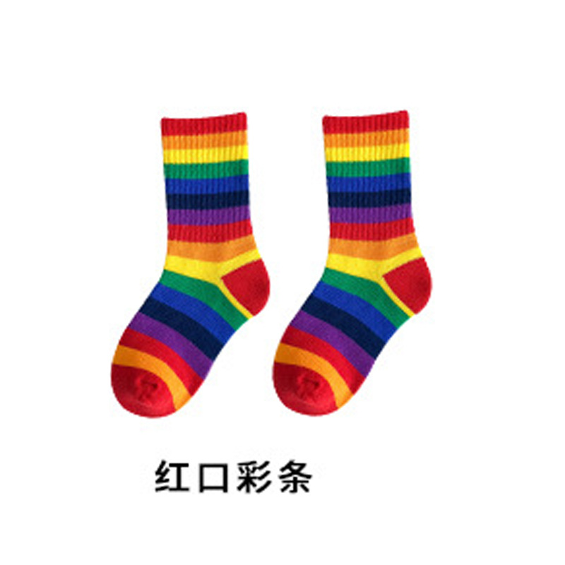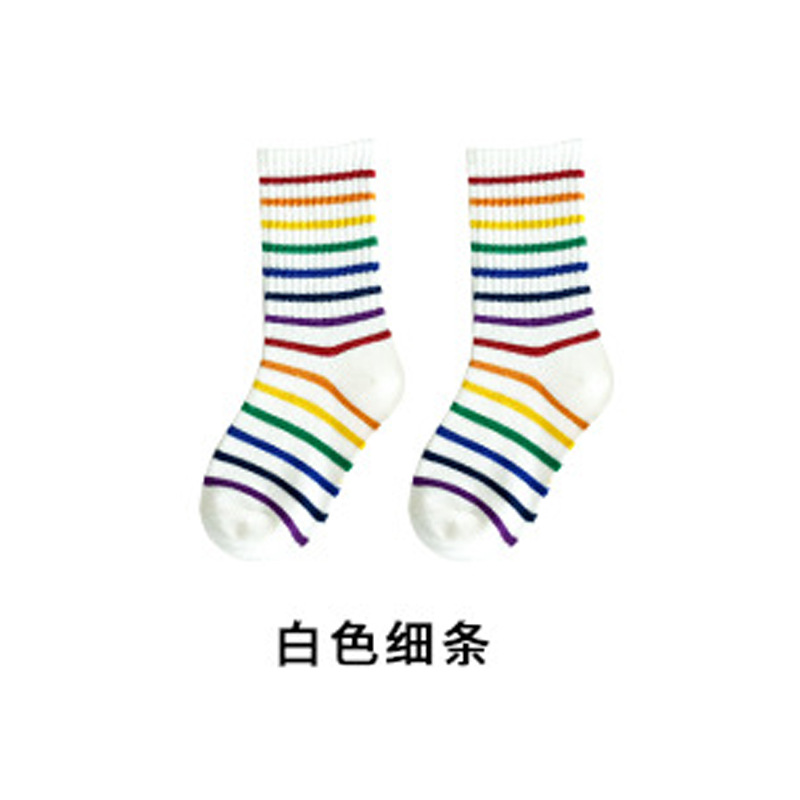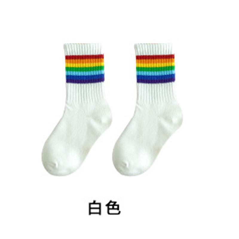 어린이 양말 봄과 가을 얇은 무지개 트렌디 양말 ins 중간 길이 양말 소년 소녀 양말 편안하고 통기성이 좋은 학생 양말