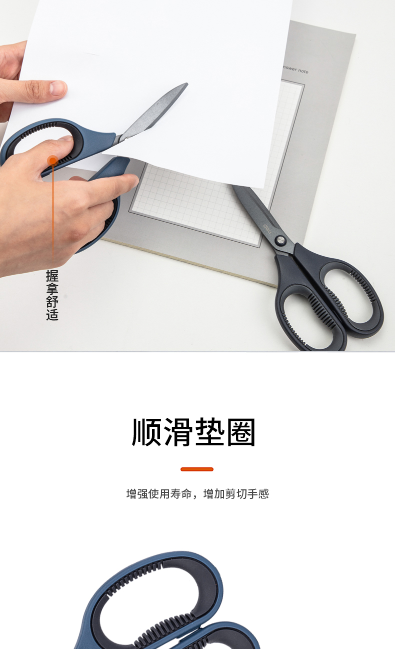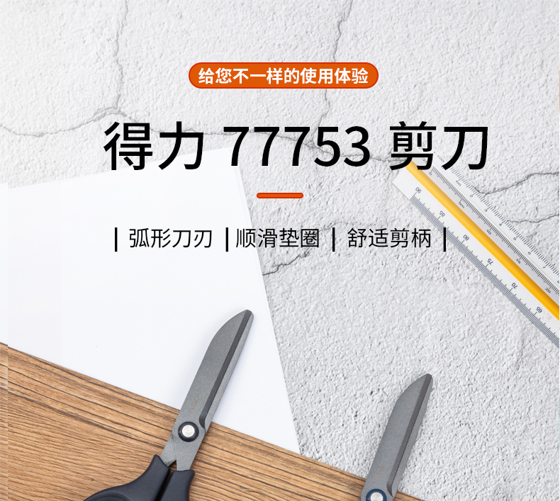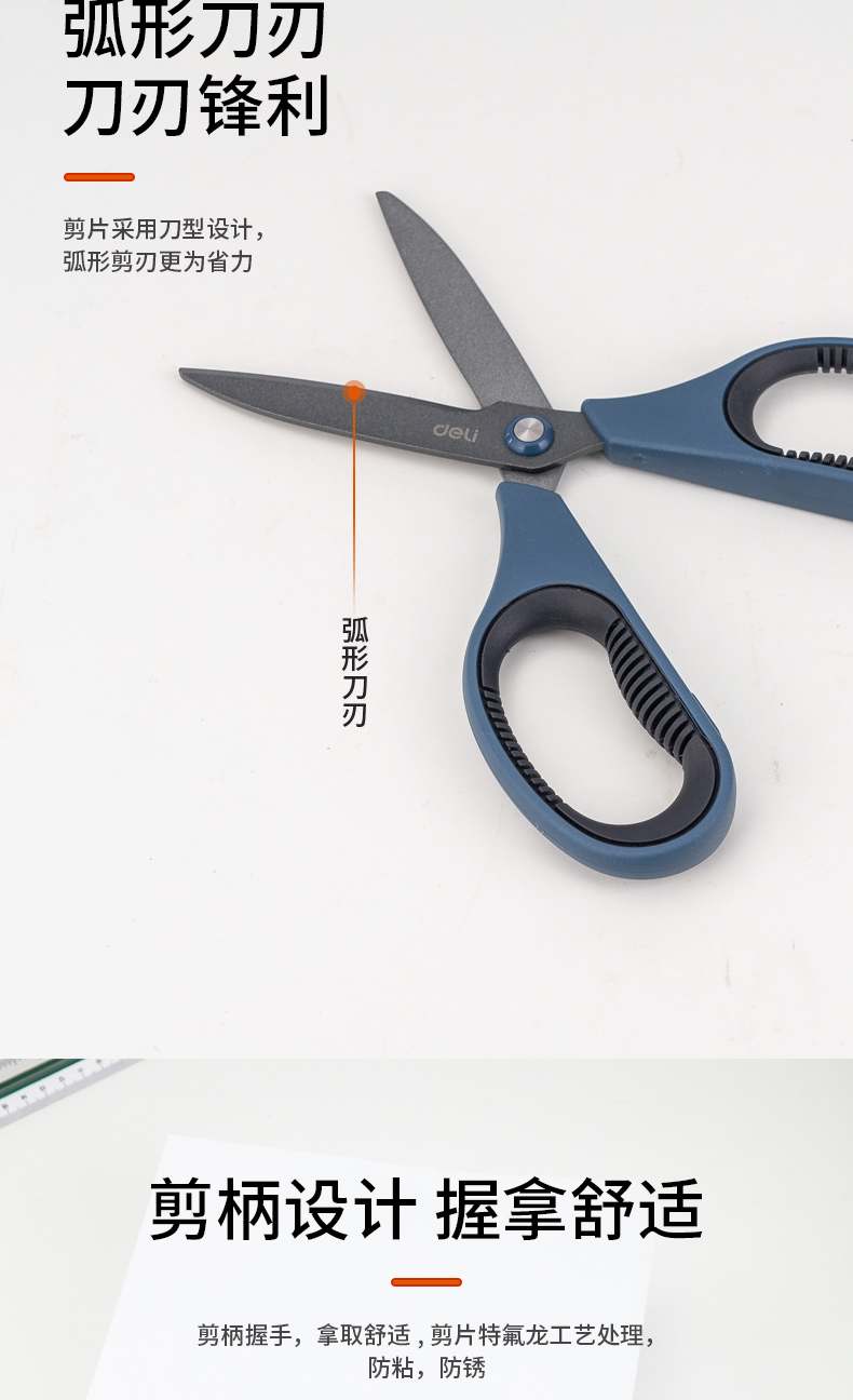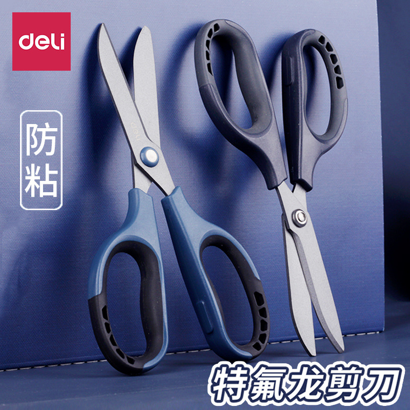 델리 77753 테플론 가위 사무실 가정용 가위 안티 스틱 녹슬지 않는 날카로운 둥근 머리 재단사 가위 학생 가위