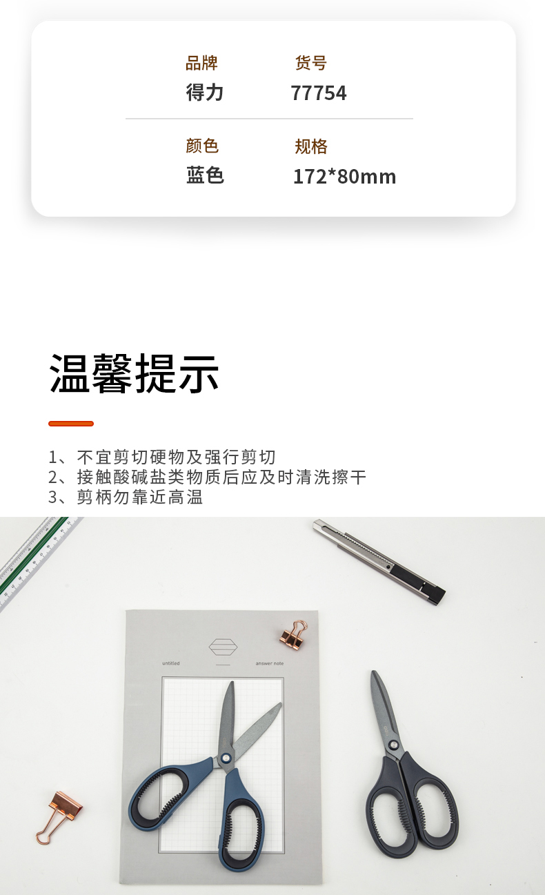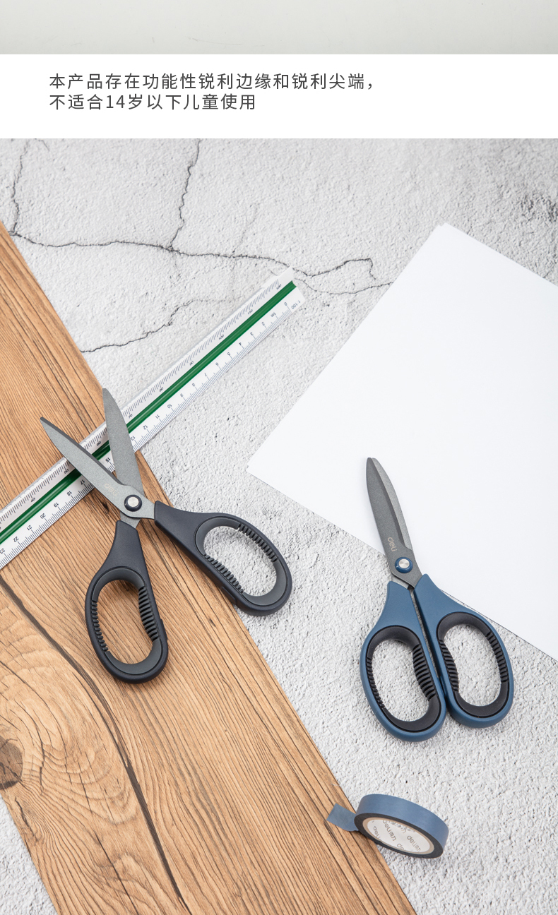 델리 77753 테플론 가위 사무실 가정용 가위 안티 스틱 녹슬지 않는 날카로운 둥근 머리 재단사 가위 학생 가위스토어 가기
