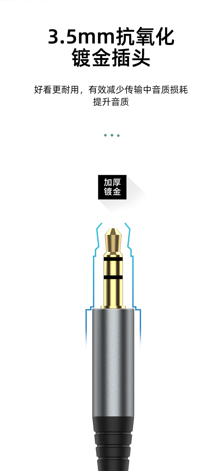 ·3.5mm抗氧化镀金插头,好看更耐用,有效减少传输中音质损耗提升音质
