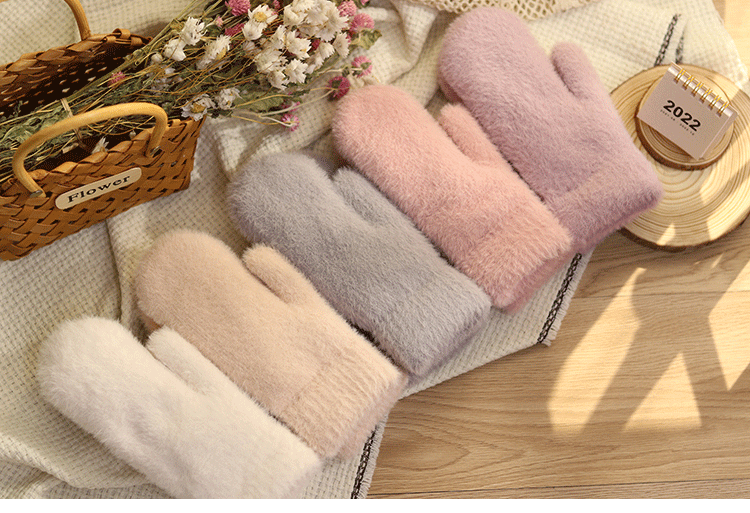 새로운 도착 가방 손가락 장갑 여자의 겨울 두꺼운 따뜻한 이중 봉제 밍크 벨벳 학생 귀여운 한국 스타일 전체 손가락 남자의 사이클링스토어 가기