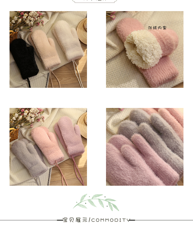 实物会和图片稍微有点色差,灯光拍摄原因,会有偏浅和偏深的稍微色差,介意者慎拍,有需要看实物颜色的可以联系客服手机拍给您看哦,一款质量很好,柔软的手套,舒适温暖