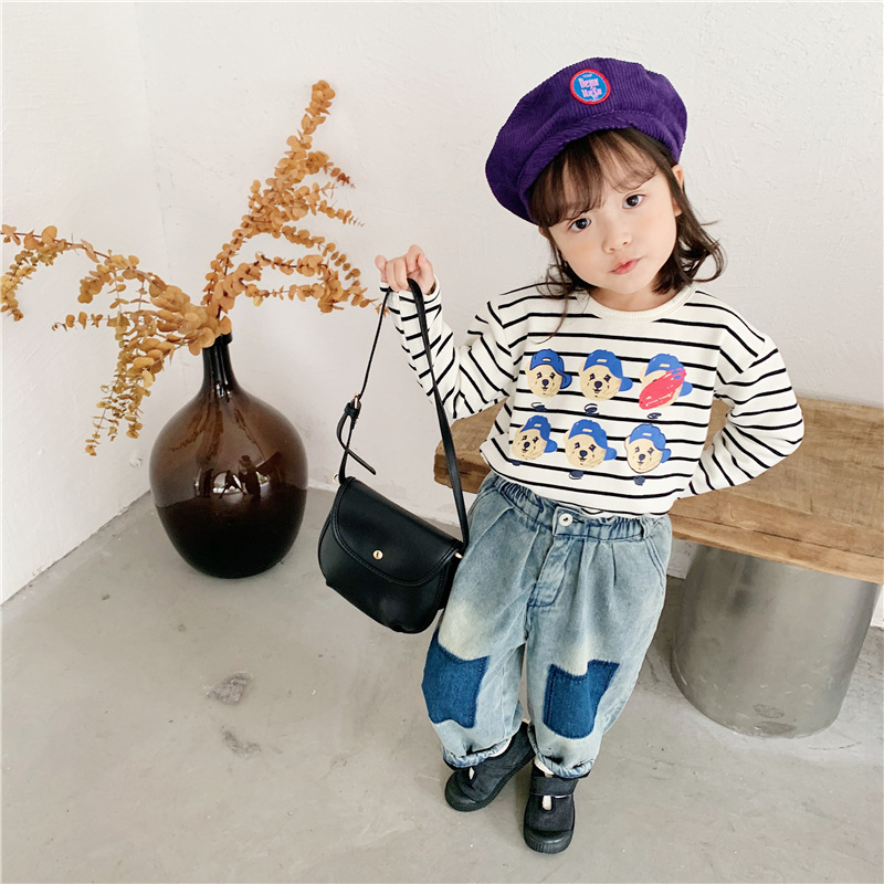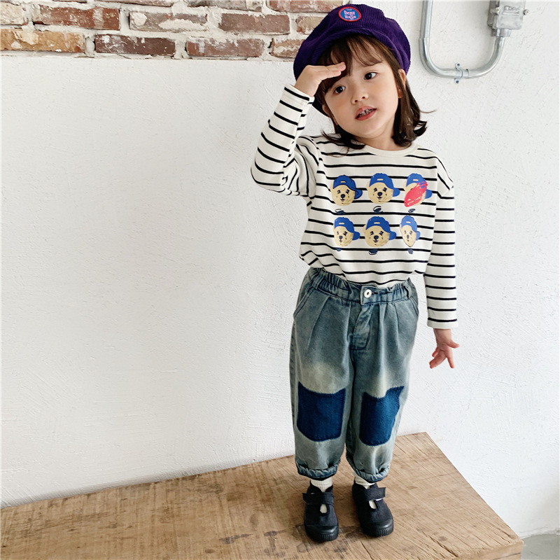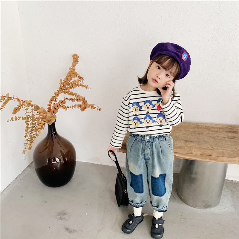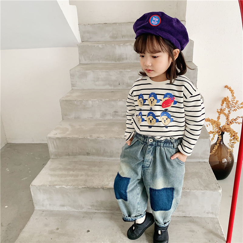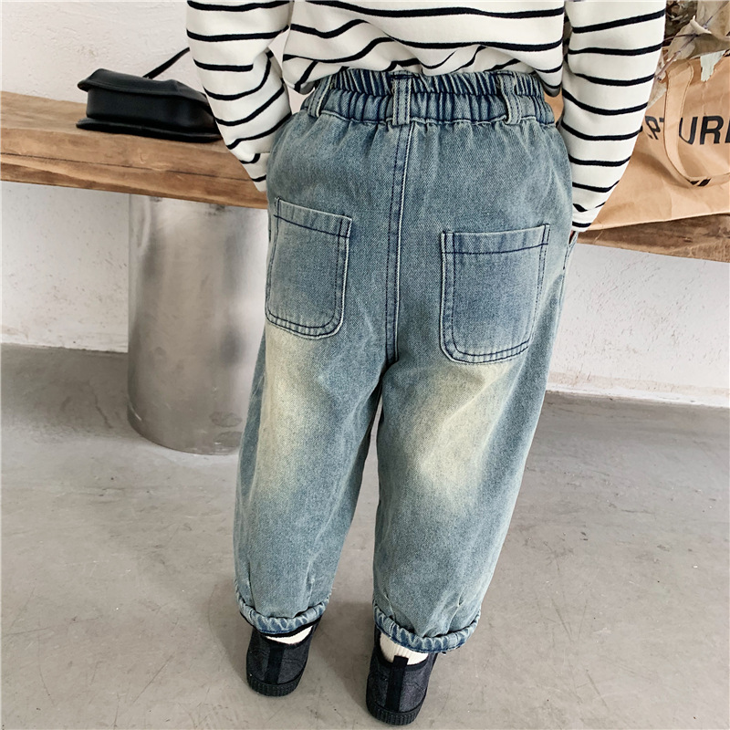 소년과 소녀 청바지 컬러 매칭 자수 겨울 기모 두꺼운 새 어린이 바지 스트레이트 다리 트렌디 K165B