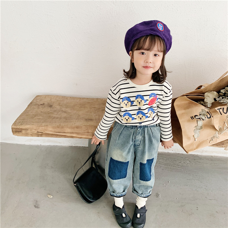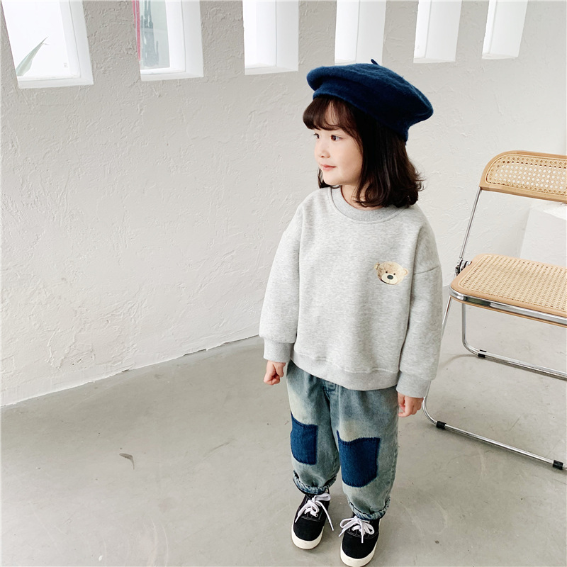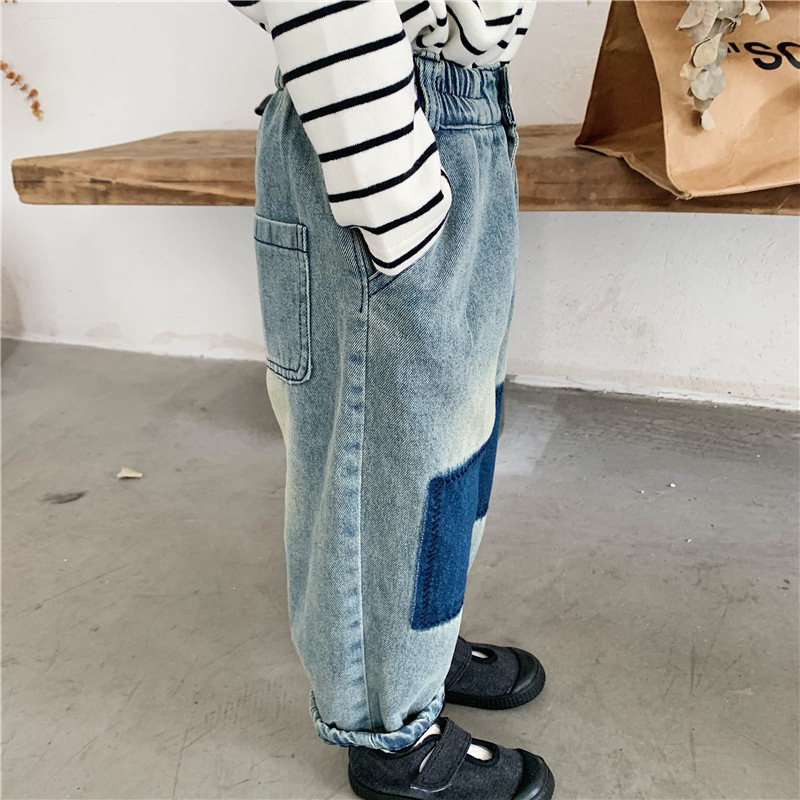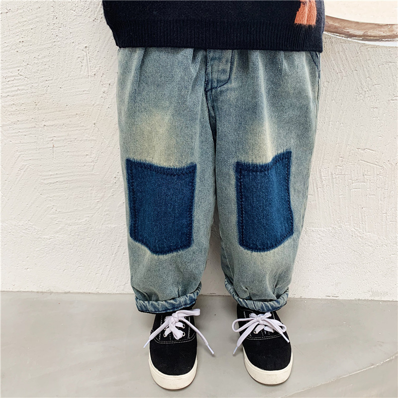 소년과 소녀 청바지 컬러 매칭 자수 겨울 기모 두꺼운 새 어린이 바지 스트레이트 다리 트렌디 K165B스토어 가기