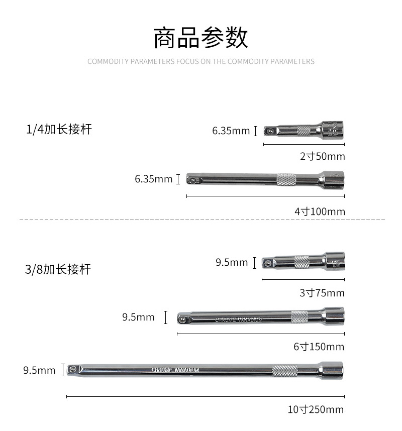 1/2 소켓 연장봉 12.5mm 소켓 연장봉 바나듐강 렌치 연장봉 길이 5inch 10inch 연장봉