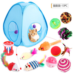 Z 아마존 애완 동물 고양이 장난감 세트 고양이 채널 고양이 장난감 스틱 벨 고양이 터널 장난감 용품 조합