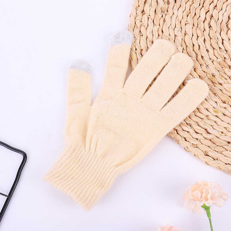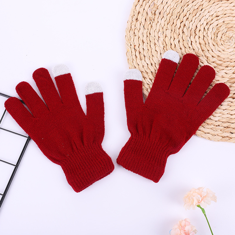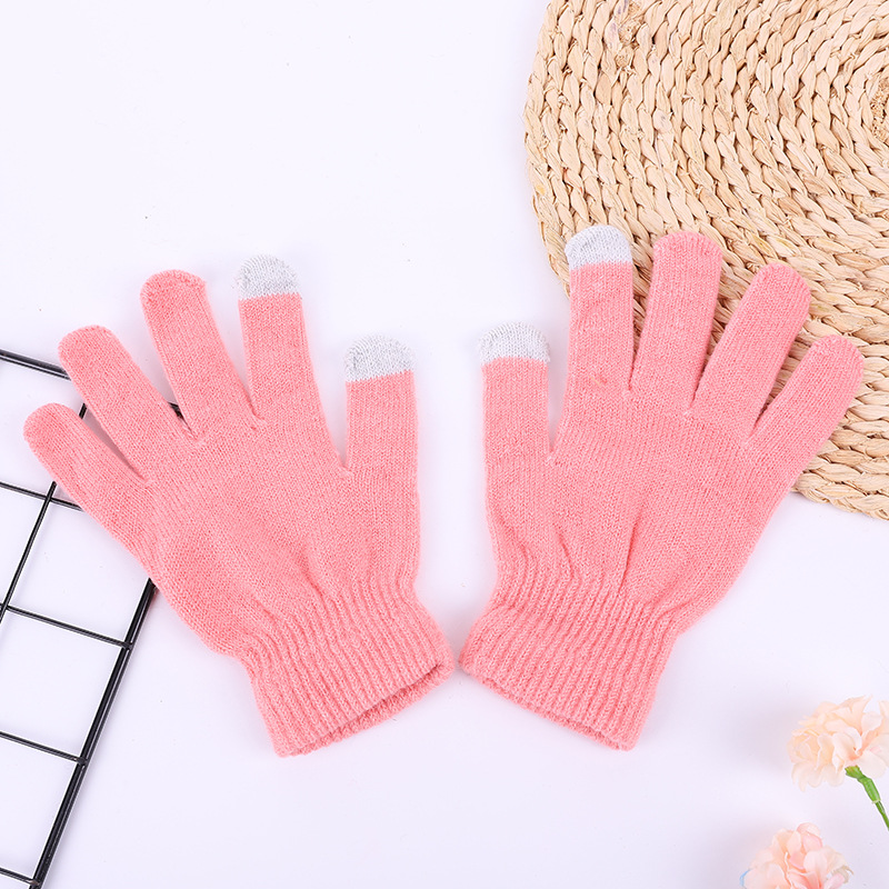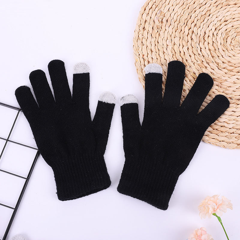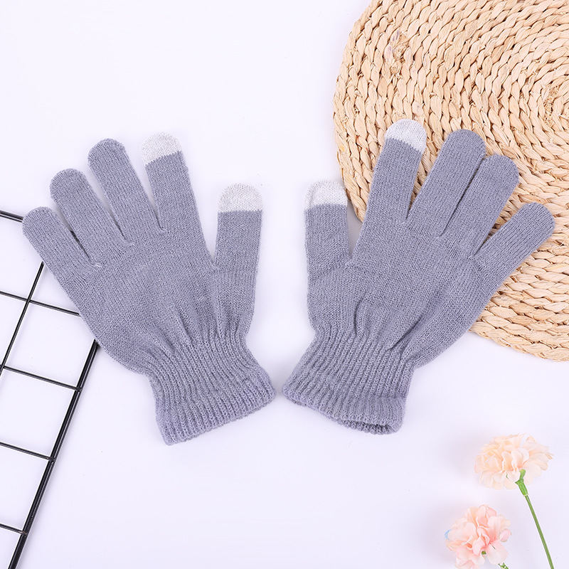 제조업체 저비용 터치 스크린 장갑 겨울 니트 따뜻한 두 손가락 터치 스크린 장갑 단색 5 손가락 장갑