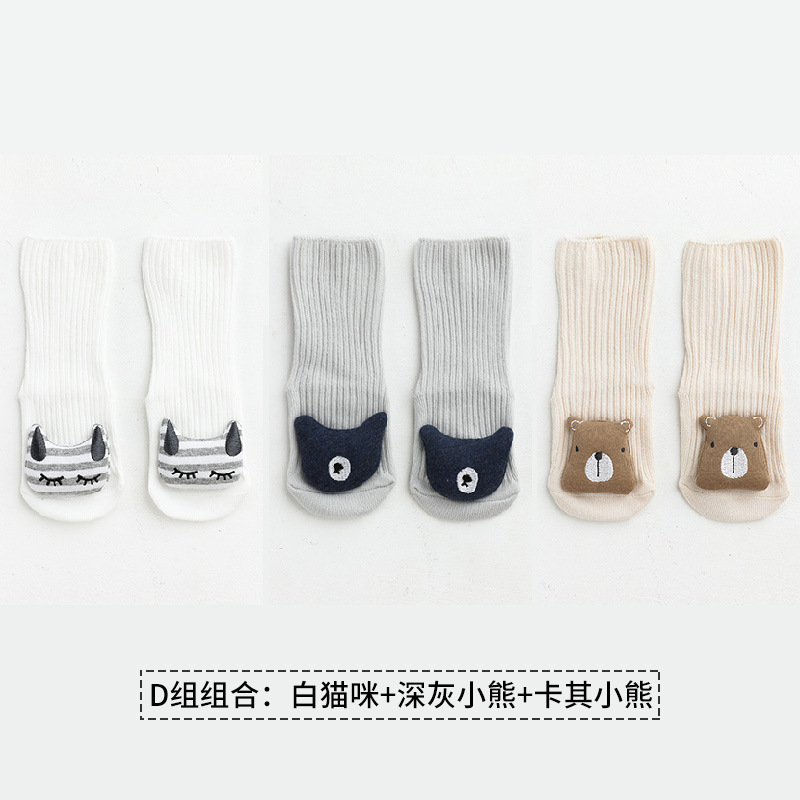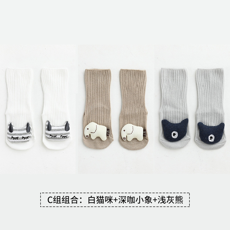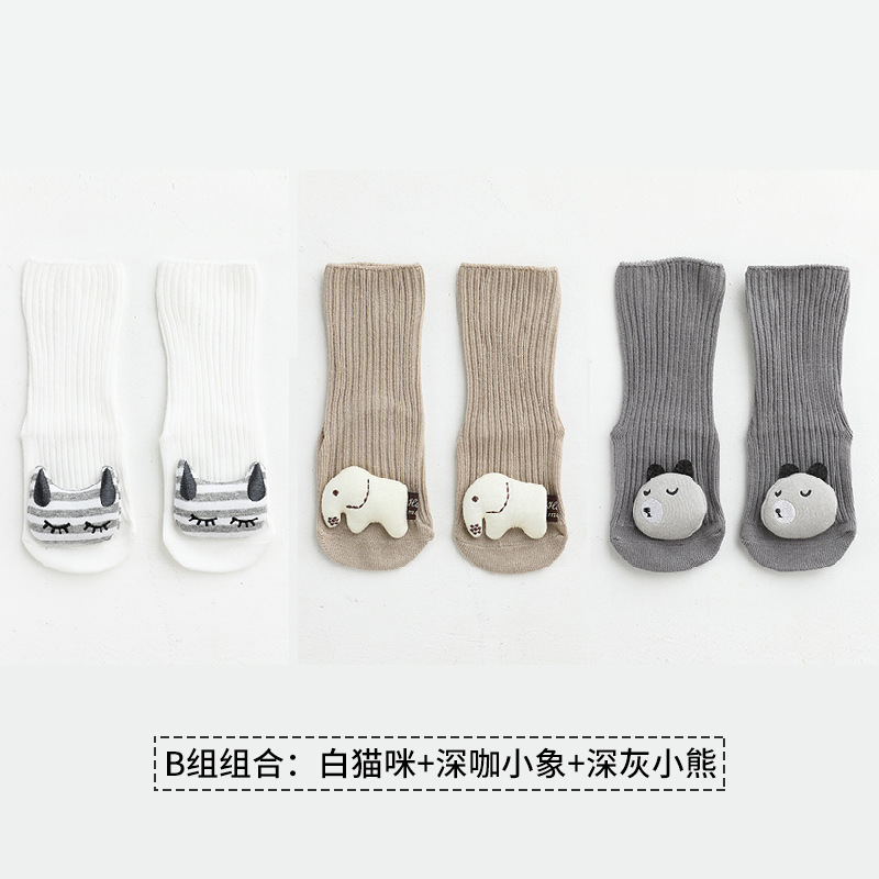 가을과 겨울 3 쌍 새로운 만화 액세서리 어린이 양말 뼈없는 느슨한 아기 미드 튜브 양말 미끄럼 방지 바닥 양말스토어 가기