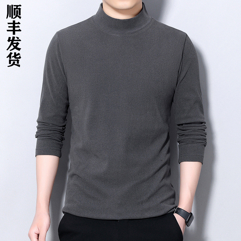 긴팔 양면 벨벳 티셔츠 남성용 세미 하이 칼라 스웨터 가을과 겨울 새로운 단색 따뜻한 바닥 셔츠 트렌디 한 남성 도매