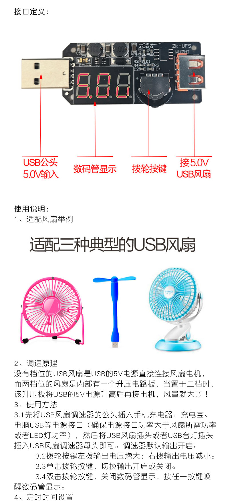 5vusb 냉각 팬 총재 저전력 타이밍 사무실 자동차 학생 기숙사 UFS LED 디밍 모듈