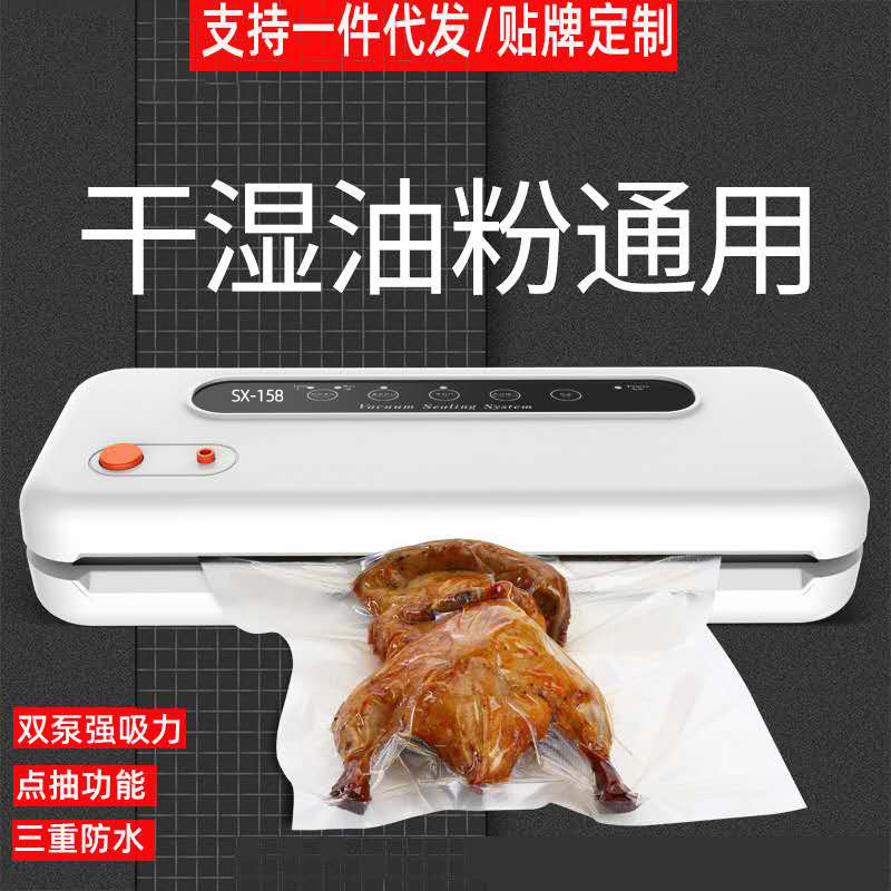 ①抽真空必须是纹路袋或者有折角的袋子,其他类型袋子仅支持单封口