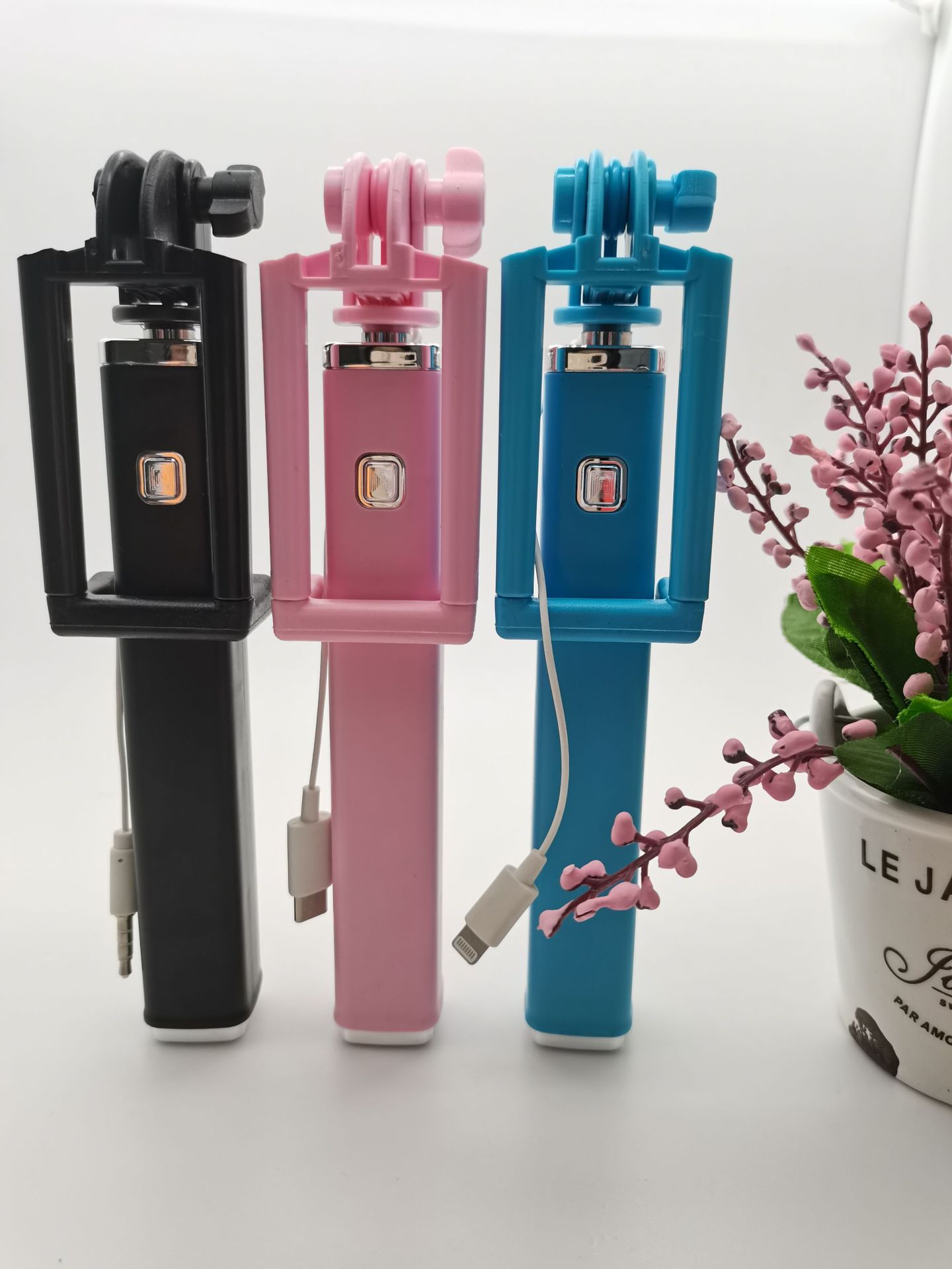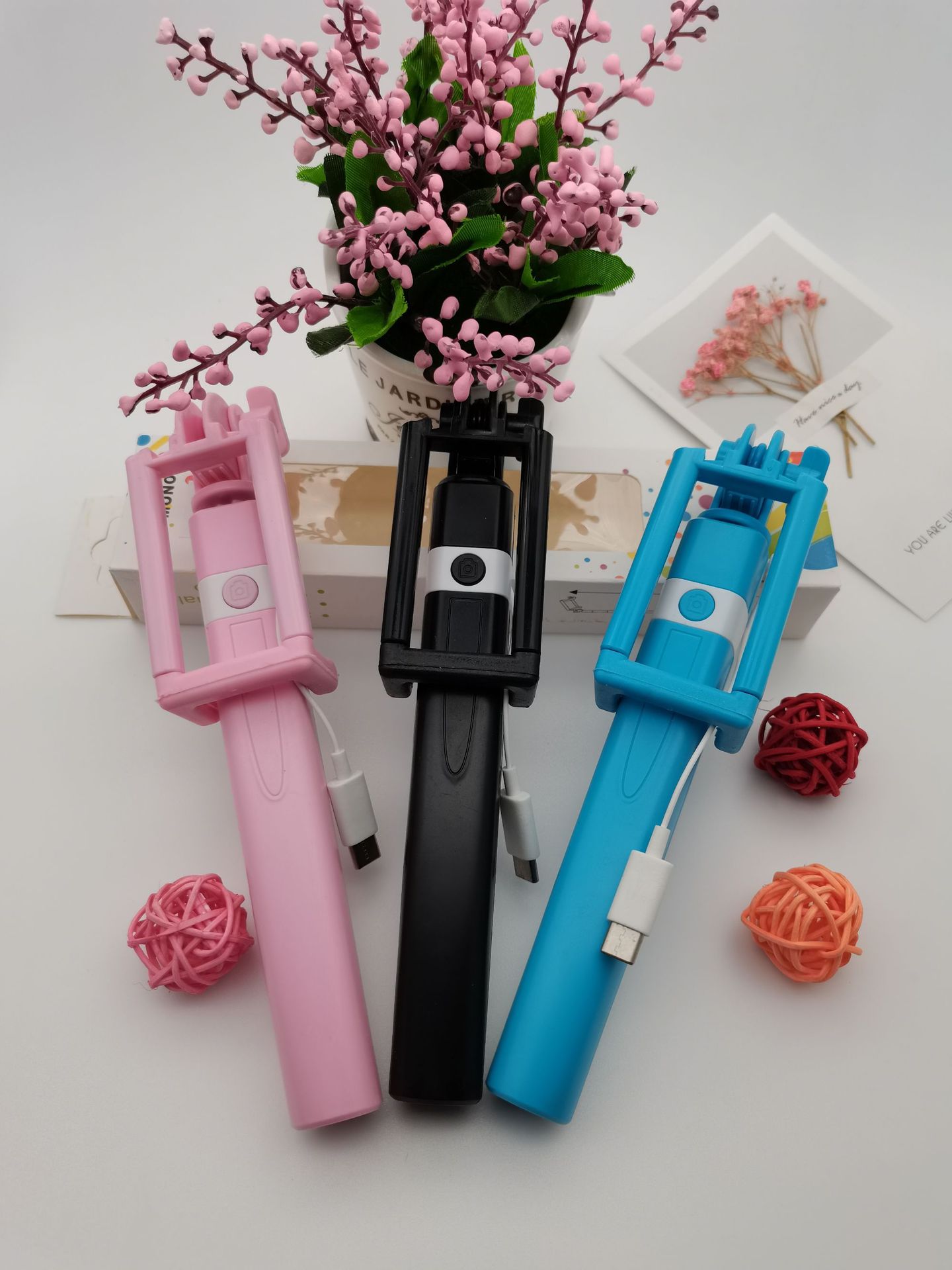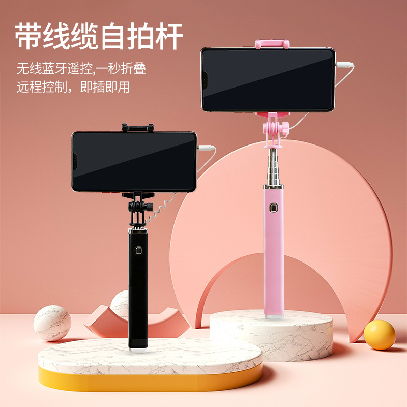 애플 화웨이 TYPE-C 접는 손 블루투스 셀카 스틱에 적합한 새로운 개인 모델 미니 와이어 제어 셀카 스틱스토어 가기