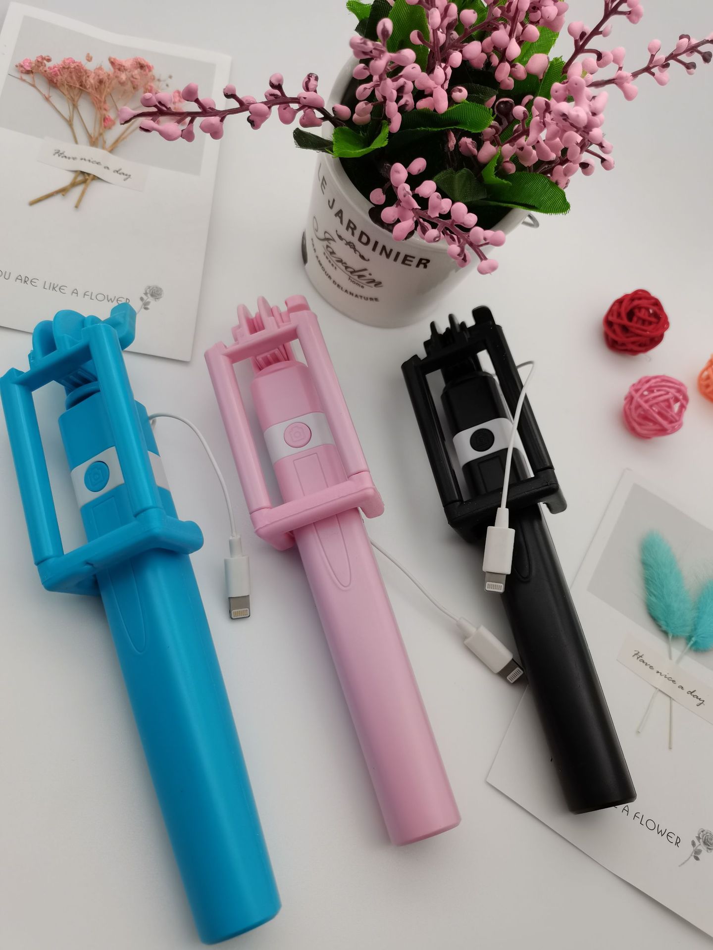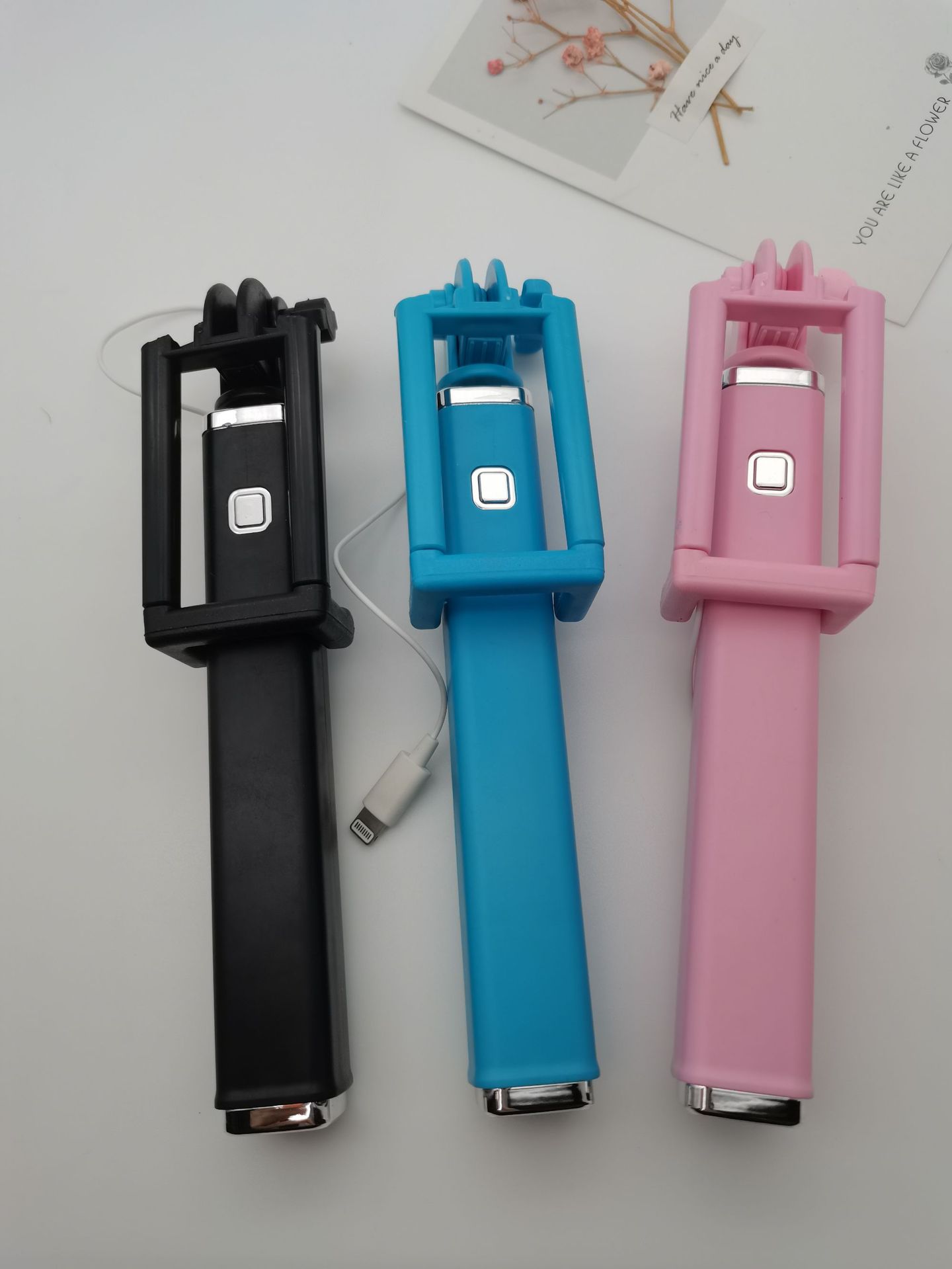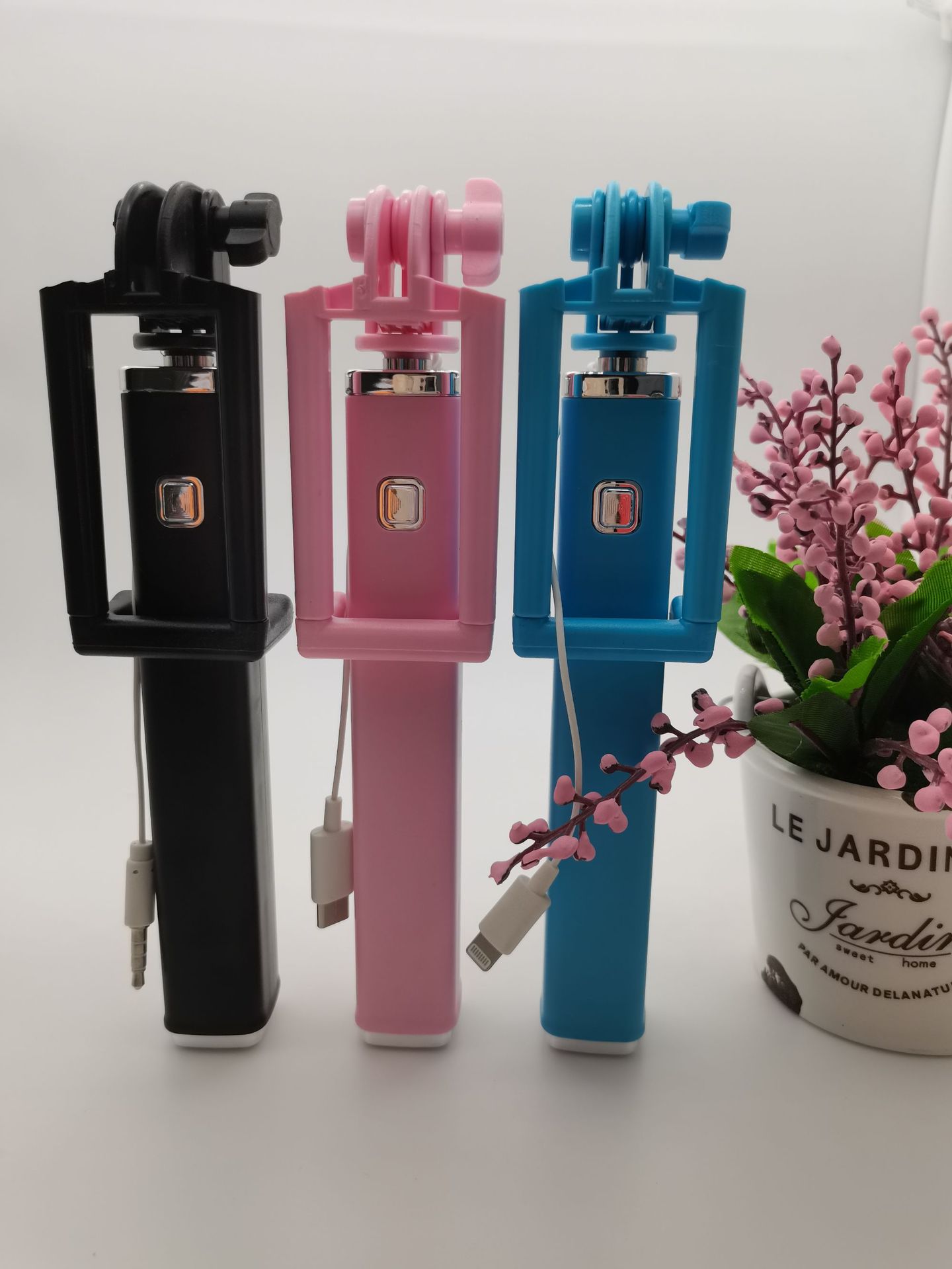 애플 화웨이 TYPE-C 접는 손 블루투스 셀카 스틱에 적합한 새로운 개인 모델 미니 와이어 제어 셀카 스틱스토어 가기