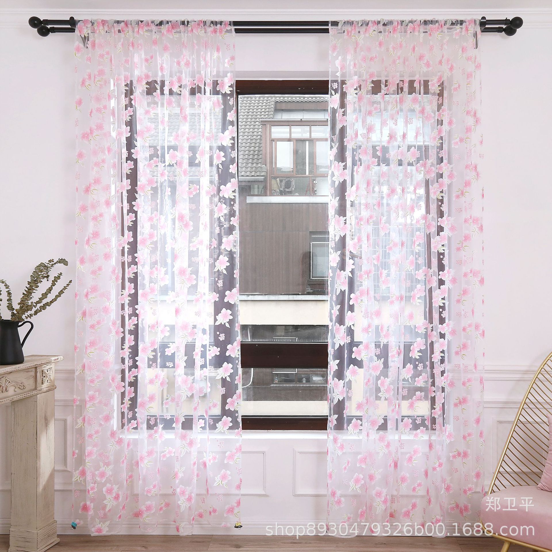 공장 직접 목가적 인 스타일의 황금 가장자리 복숭아 꽃 인쇄 커튼 투명 창 화면 오프셋 인쇄 거즈 커튼 국경 간 AliExpress 뜨거운 판매