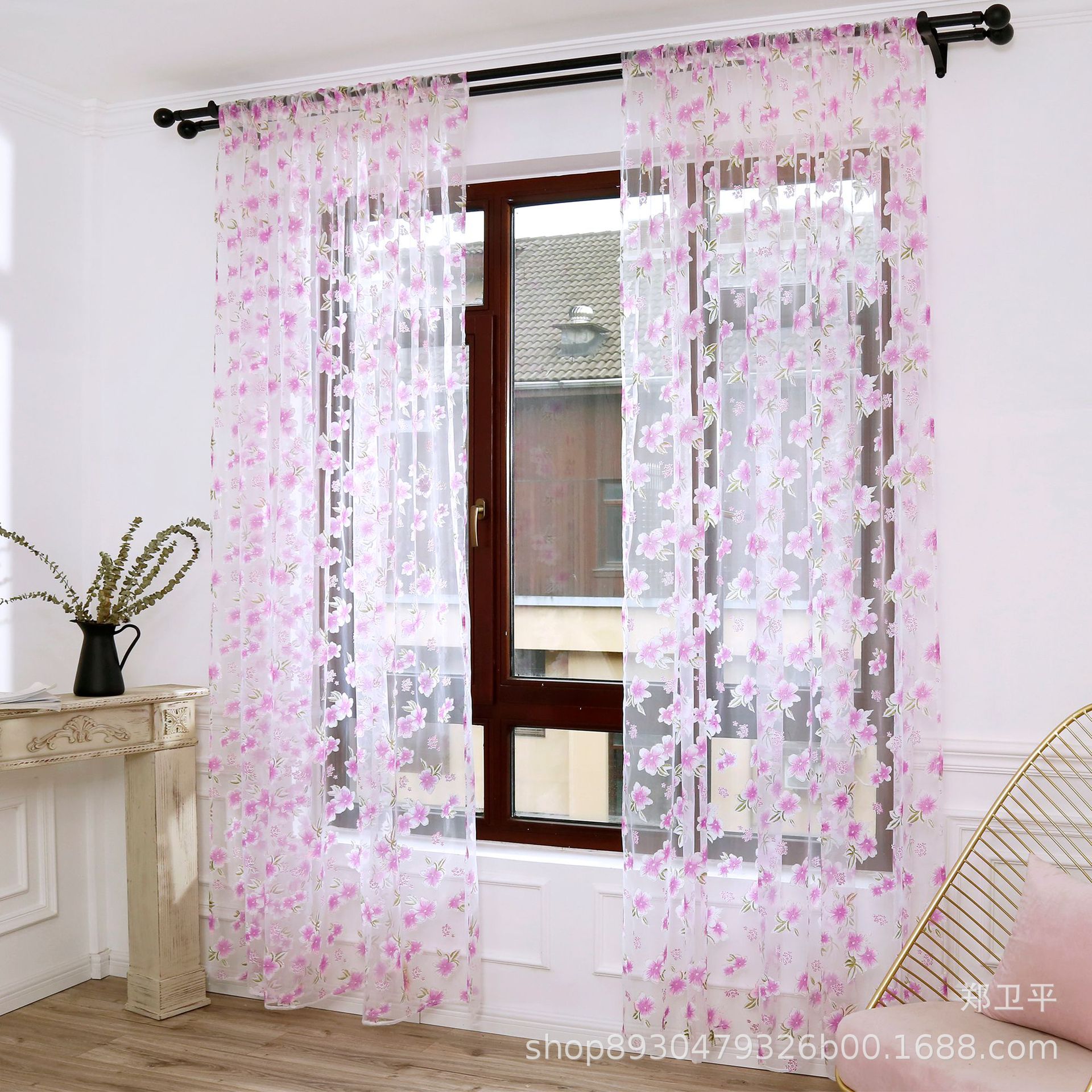 공장 직접 목가적 인 스타일의 황금 가장자리 복숭아 꽃 인쇄 커튼 투명 창 화면 오프셋 인쇄 거즈 커튼 국경 간 AliExpress 뜨거운 판매스토어 가기