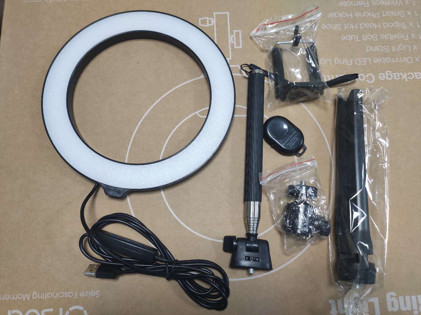 • 20cm 필 라이트 + 셀카봉 + 탁상용 삼각대 + 블루투스 리모콘 + 대형 휴대폰 클립