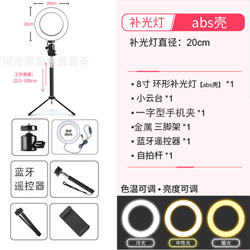 국경을 넘는 휴대폰 라이브 방송 스탠드 플래시 라이트 보조광 블루투스 8inch LED 링 라이트 앵커 사진 조명 20cm 디지털
