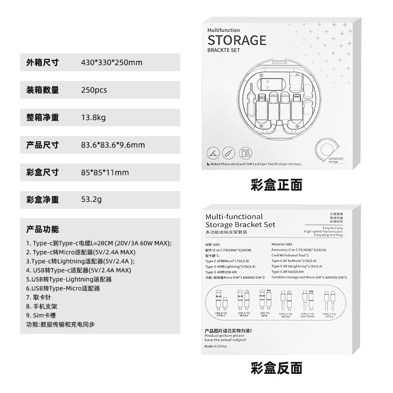 휴대용 크로스보더 데이터 케이블 어댑터 6-in-1 세트, 도시 생존 세트 5-in-1의 완전한 기능 세트스토어 가기