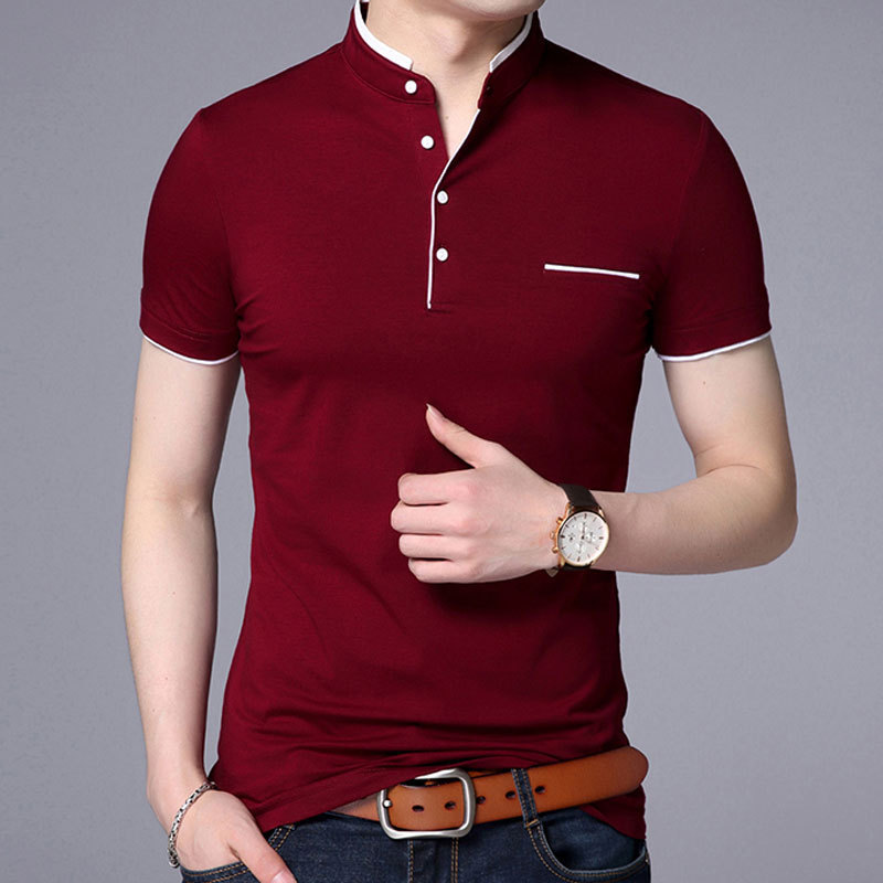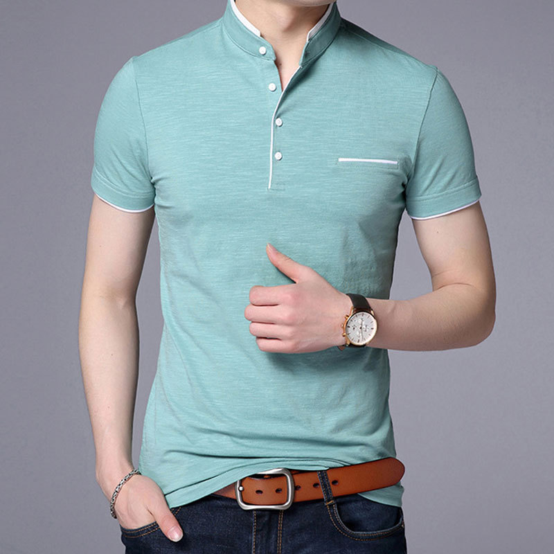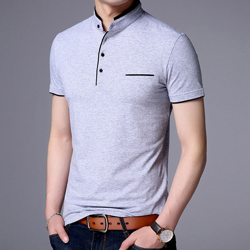 [재고 있음] 여름 남성 스탠드 칼라 반팔 티셔츠 플러스 사이즈 슬림 남성 반팔 티셔츠 7122 # 캐주얼하고 다재다능함
