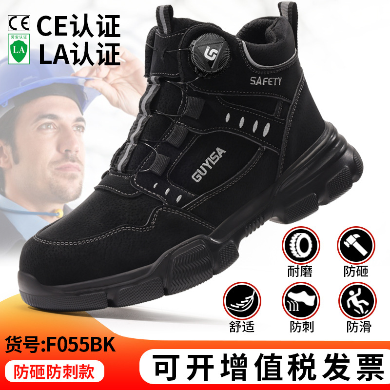 • F055BK - 가볍고 신고 벗기 쉬운 하이탑 노동 보호 신발;39
